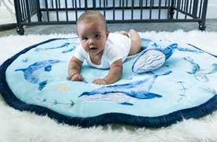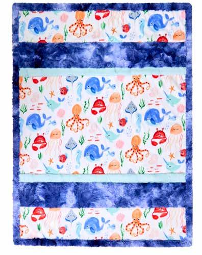 Complete Cuddle® kit includes fabric for the quilt, backing, binding, & pattern. Also includes panel for playmat top and whale stuffie, playmat backing, binding, and pattern. 27" x 27" / 40" round