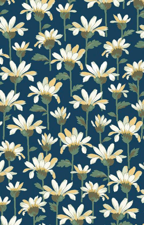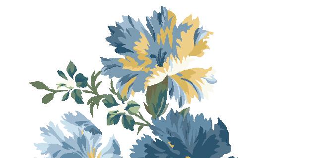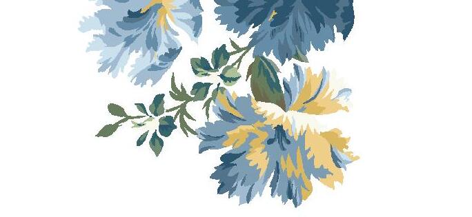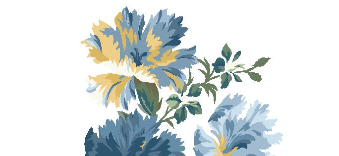 Willoughby is influenced by the Arts & Crafts movement, where artists and designers emphasized nature in the decorative arts. Stylized florals and leaf-focused designs mix with geometric patter ns to create traditional designs with a modern twist. The deep blues, creamy neutrals, and a pop of yellow work together to create projects that complement modern home décor.