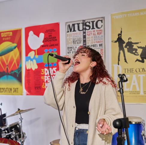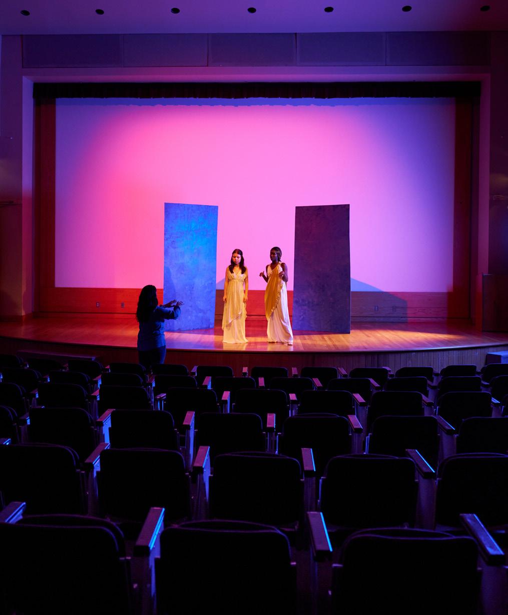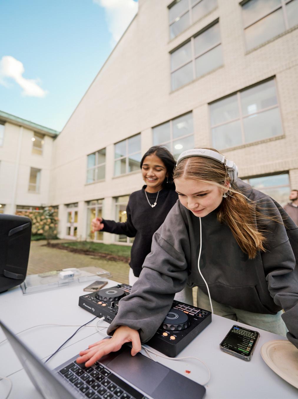 A favorite for aspiring artists. There are many places on campus, both leisure and academic, that are purposely curated to inspire. Create compelling visual art and design in the well-stocked art rooms. Practice iconic ballet, jazz, or hip-hop routines in the dance studio. Play the piano, drums, bass, or violin; compose original scores of your own; or just jam with friends—in one of the music rooms or soundproof booths.