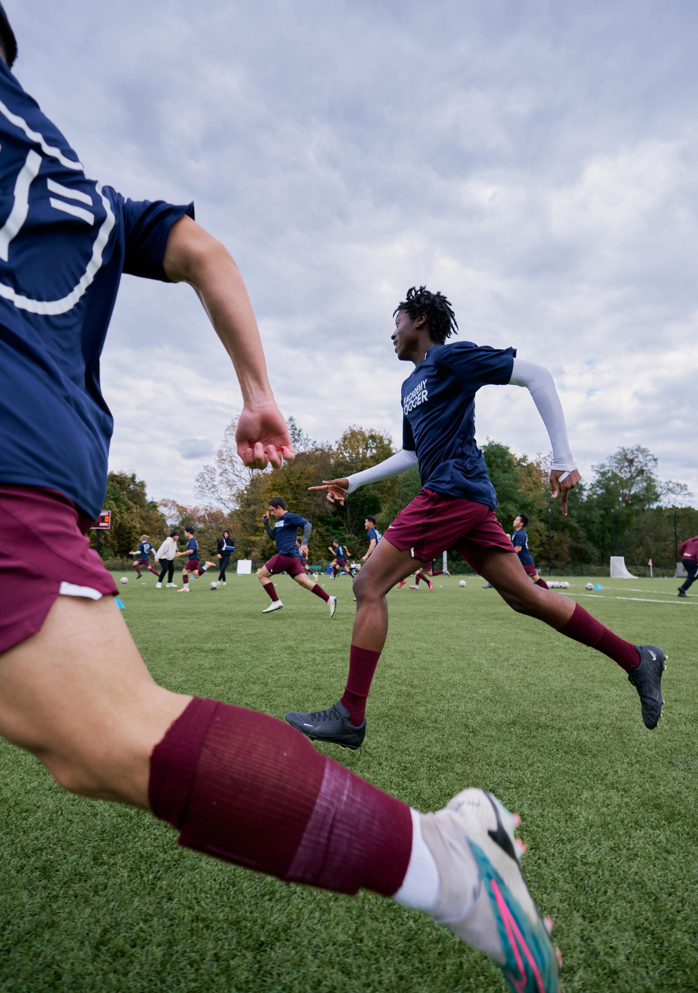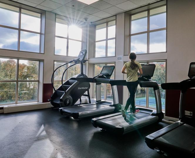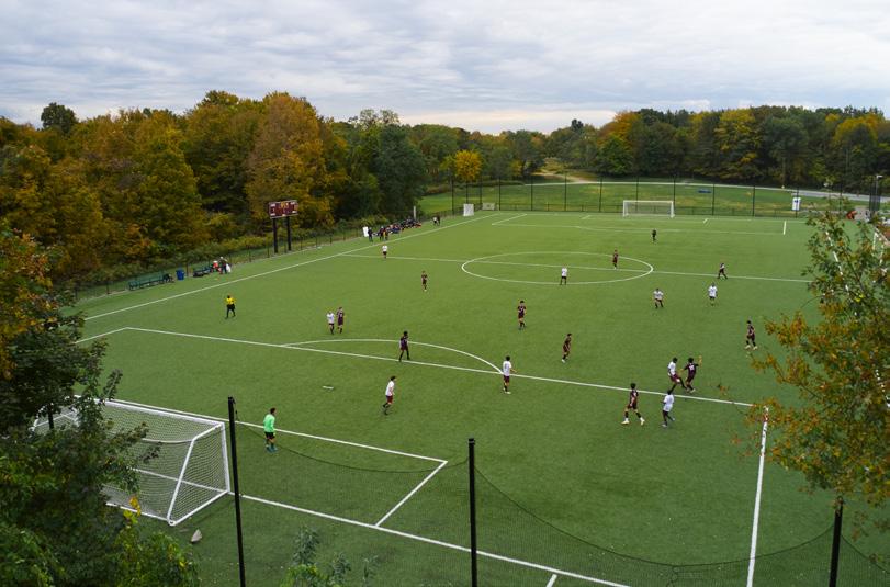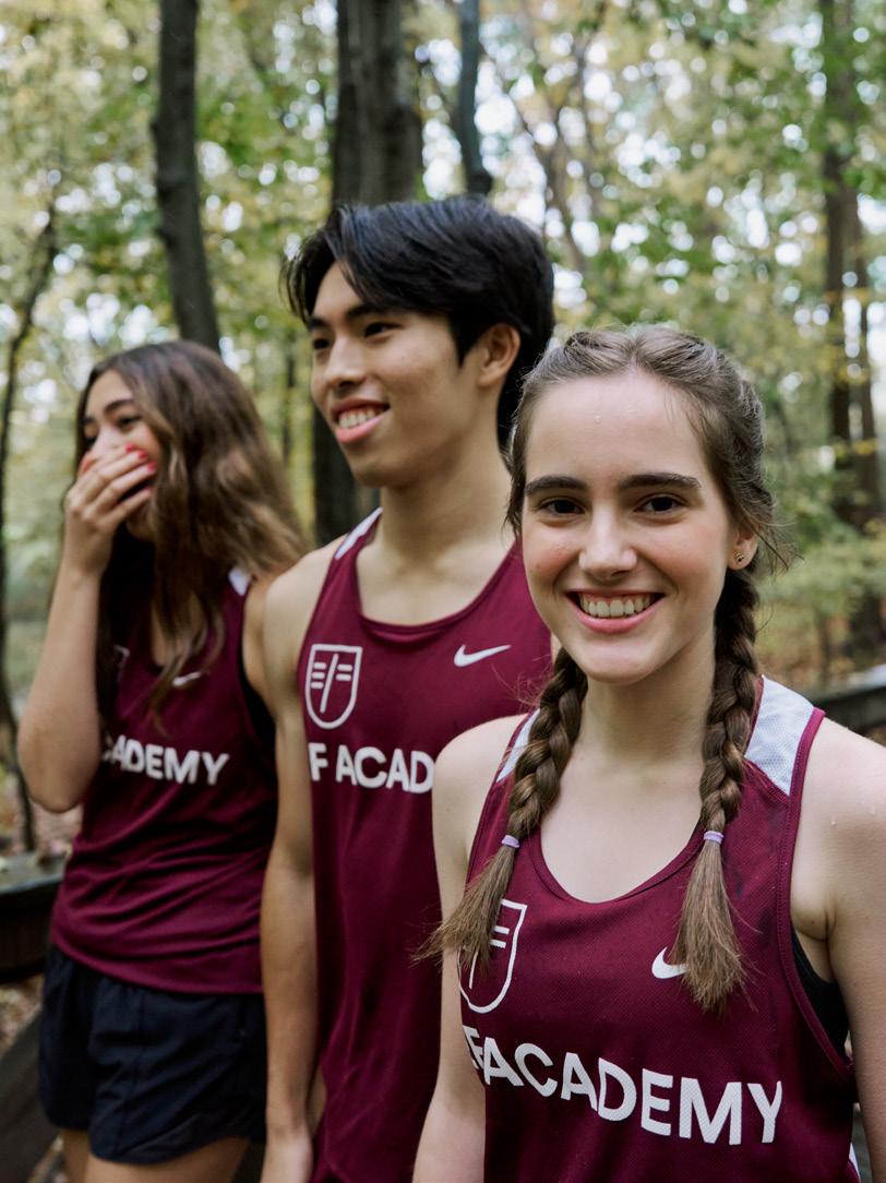 Our Falcons Athletic Center features a multipurpose gymnasium perfect for physical education classes, varsity sports matches, and after-school pickup games. There’s also a fully equipped and supervised fitness center with weights and exercise machines. After classes, students make good use of our world-class outdoor soccer pitch, basketball, and tennis courts, and the wooded 5K trail that runs throughout campus. Learn more details about our club and sport offerings on page 44.