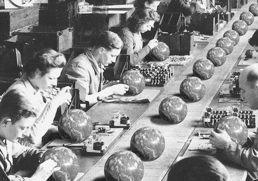 Mr. Gilles gazing thoughtfully at the Dymaxion globe