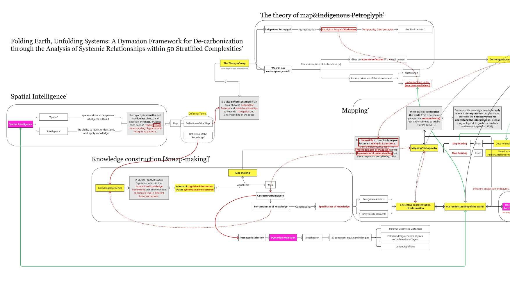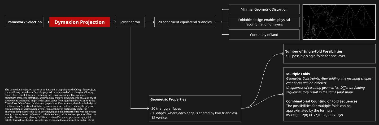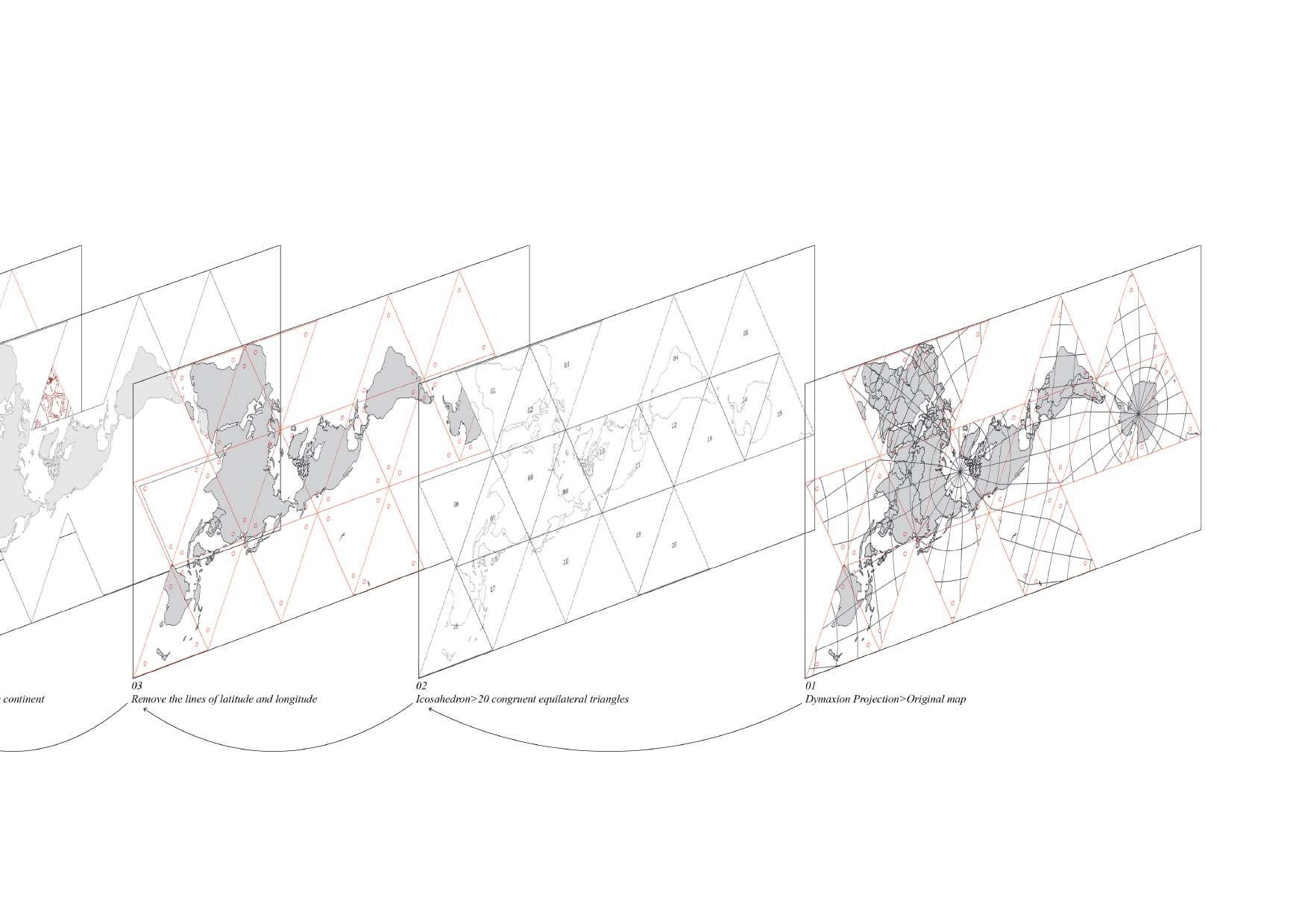 The project explores the integration of spatial intelligence and system dynamics modeling to address complex challenges in contemporary urban and environmental systems. Through the application of Dymaxion projection and foldable cartography, this study reimagines geospatial representation, enabling a more equitable and adaptable understanding of networked spatial interdependencies. By employing complex system stratification and