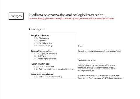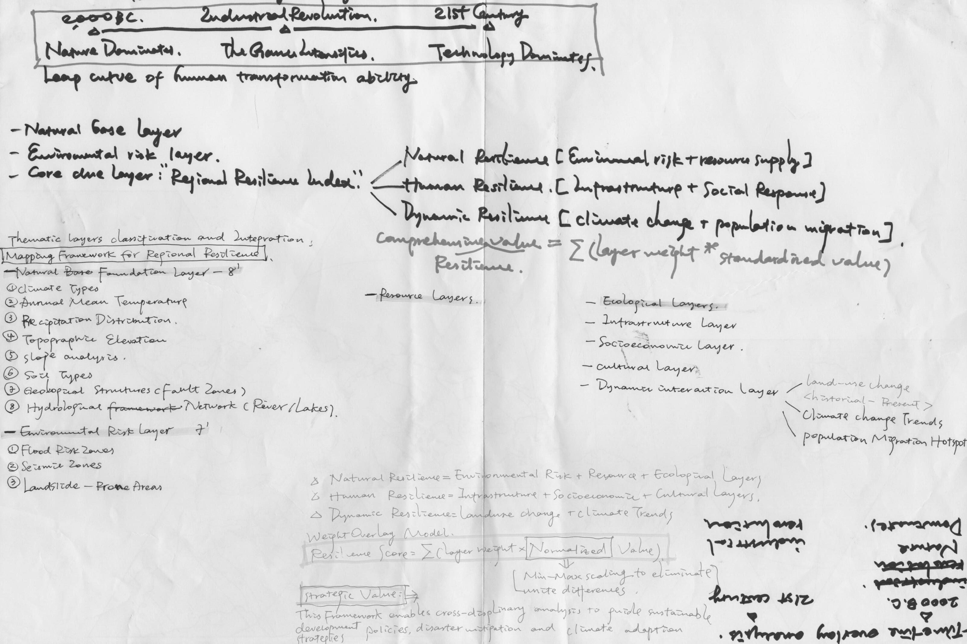 dynamic layer prioritization, the project seeks to uncover hidden patterns and optimize decision-making across interconnected systems. Central to this exploration is a commitment to de-carbonization and de-colonization, advancing sustainable and inclusive approaches that redefine spatial governance. This work ultimately aims to provide a transformative framework for engaging with dynamic, multi-scalar systems in an era of rapid global change.