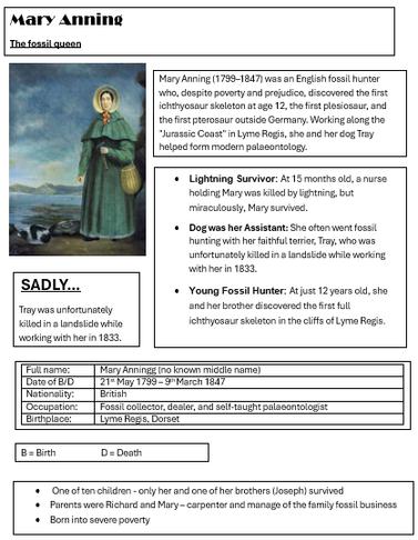 Year 6 have been researching Mary Anning as part of their topic on Fossils