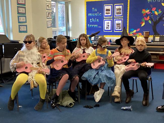 Year 5 - Monica H - thank you for being so helpful in our ukulele group