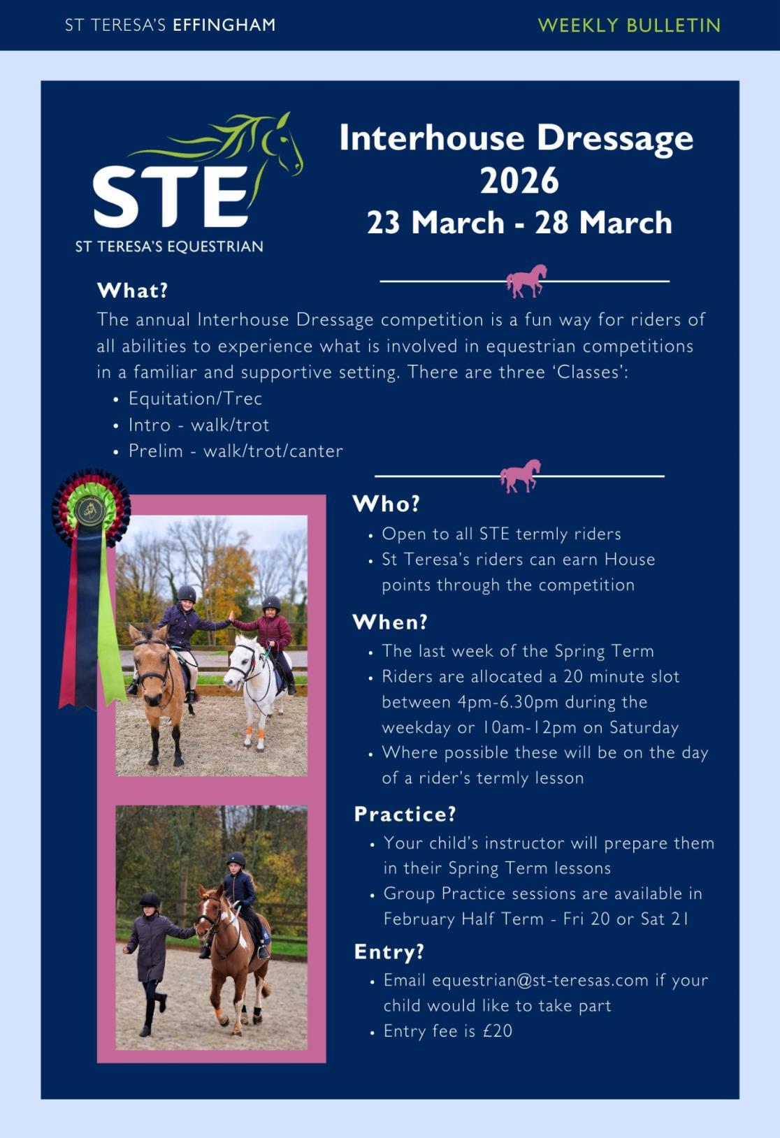 The deadline for entry is 13th March to allow entries to be submitted by the closing date and entries should be sent to c.ridulfa@st-teresas.com.