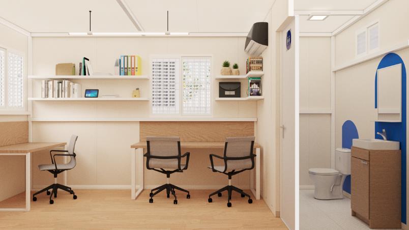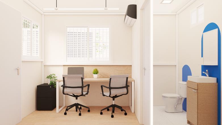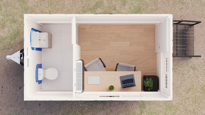 MODELO OFRB-712 OFICINA MOVIL. 7’X12’ (2.10m X 3.60m). CON BAÑO.
