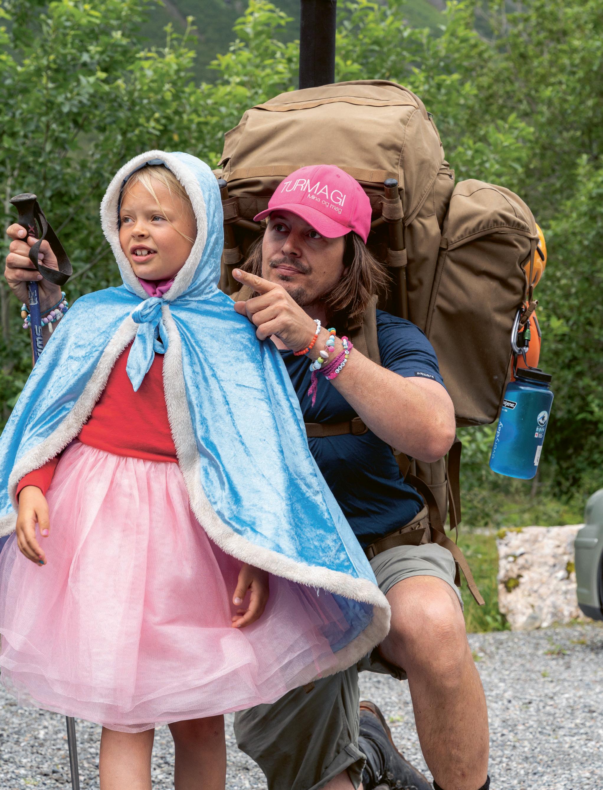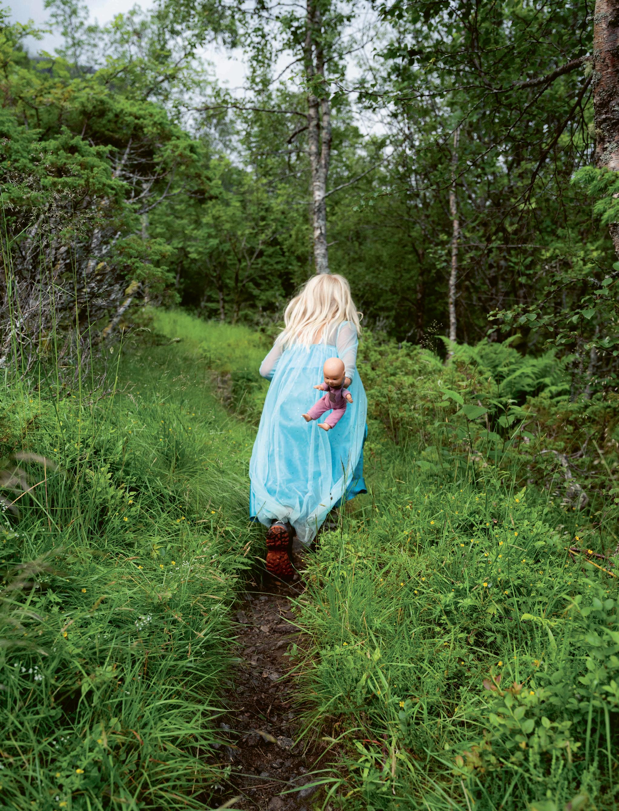 – Daddyen min heter Alexander, sier Mina. Og mammaen min heter Kristin Victoria. Hun er ikke med på denne turen. Hun er hjemme med lillesøsteren min, Lilje Olava, som er seks måneder gammel. Men vi er masse på tur sammen, vi også. Aller mest i eventyrskogen bak huset vårt.