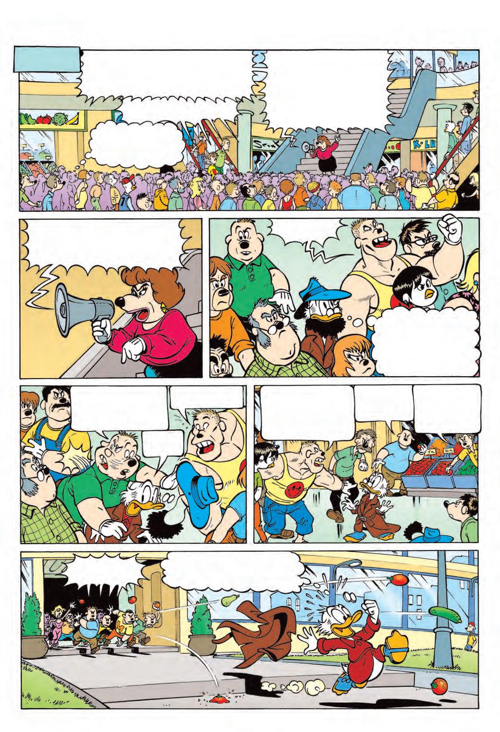 SNART ... I LIKHET MED ALLE ANDEBYBORGERE VAR JEG STOLT AV AT VÅR EGEN SKRUE MCDUCK VAR VERDENS RIKESTE AND! DERFOR HAR JEG ALLTID HANDLET I BUTIKKENE HANS! MEN NÅ STÅR DET I AVISEN AT DET HELE BARE ER EN PR-BLØFF! BUUUUUUUU! GISP! FOR EN ANSAMLING! FRA NÅ AV BOIKOTTER VI BUTIKKENE HANS – OG SAKSØKER HAM FOR VILLEDENDE MARKEDSFØRING! FOR EN SKURK! JAMMEN GODT JEG ER FORKLEDD. HVEM VET HVA MOBBEN VILLE HA GJORT OM DE SÅ MEG! HEI, IKKE DYTT! UNNSKYLD, JEG MENTE IKKE Å ... HEI, SE! GISP! FOLKENS! MCDUCK HAR VALGT Å GLEDE OSS MED SITT NÆRVÆR! JASÅ? TA HAM! OPPS! DETTE VAR VISST INGEN GOD IDÉ ... LA OSS VISE HVA VI SYNS OM HAM! 34