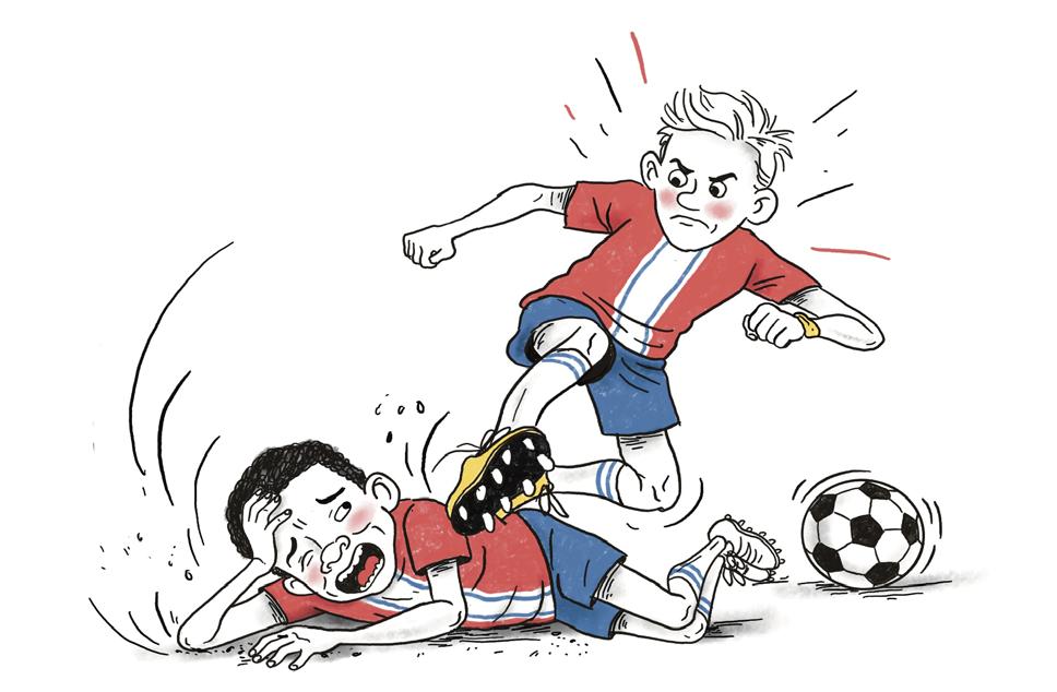 Men så fikk Pedro en lumpen dytt i ryggen og stupte inn i reklameskiltet. Fyren på det andre laget lo av ham og skreik: «For ei høne». Pedro tok seg til munnen (det skulle vise seg at han hadde fått slått ut en splint av framtanna si) og det var tydelig at han begynte å bli SKIKKELIG SUR. Like etterpå ble han løpt ned av ei back-tønne og magetryna i en søledam som lukta bæsj. Som om ikke det var nok ble Pedro boksa i trynet av keeperen deres etter en corner og da så vi det, at noe skjedde.