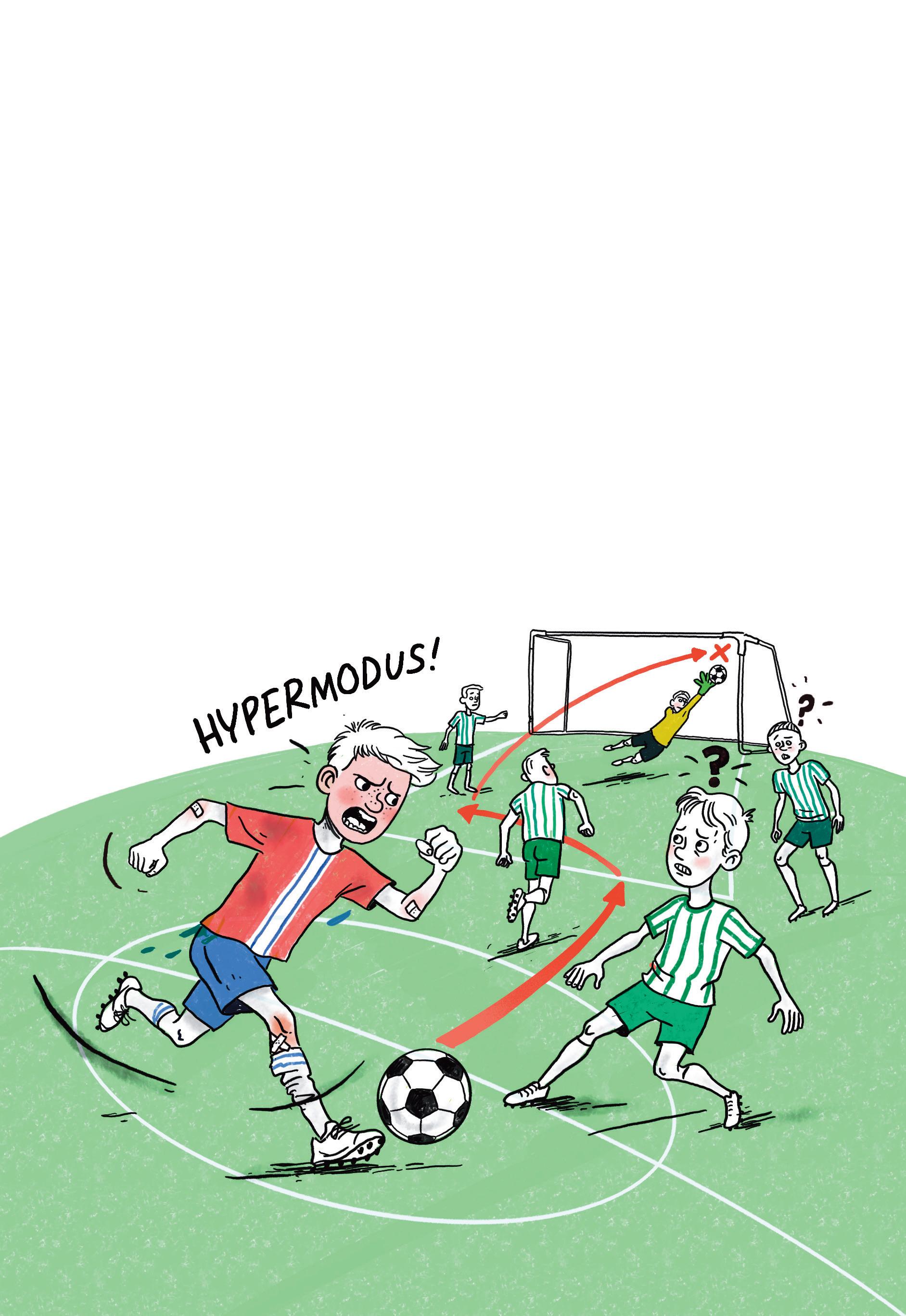 Han hadde riktignok en helt spesiell modus som vi på laget kalte for HYPERMODUS. Dette var noe han kunne komme inn i dersom noen virkelig tråkket han på tærne. For han likte ikke arrogante typer. Likte ikke å bli sparka ned (men ja, hvem liker det?). Likte egentlig ikke å bli dribla heller (noe han ble jevnt over hele tida). I HYPERMODUS forvandlet Legenden seg til en slags «varulv» og begynte å takle, spurte og score de mest vanvittige mål. Det gjorde også at han satt igjen med et lite museum av gule og røde kort, noe han faktisk var litt stolt av (men det gjør ham ikke til noe forbilde for deg som leser dette, altså (regelen er: man skal høre på dommeren!1)).