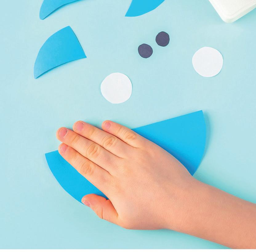 Lim side 33 til blå kartong og klipp ut alle haibitene langs de stiplede omrissene.