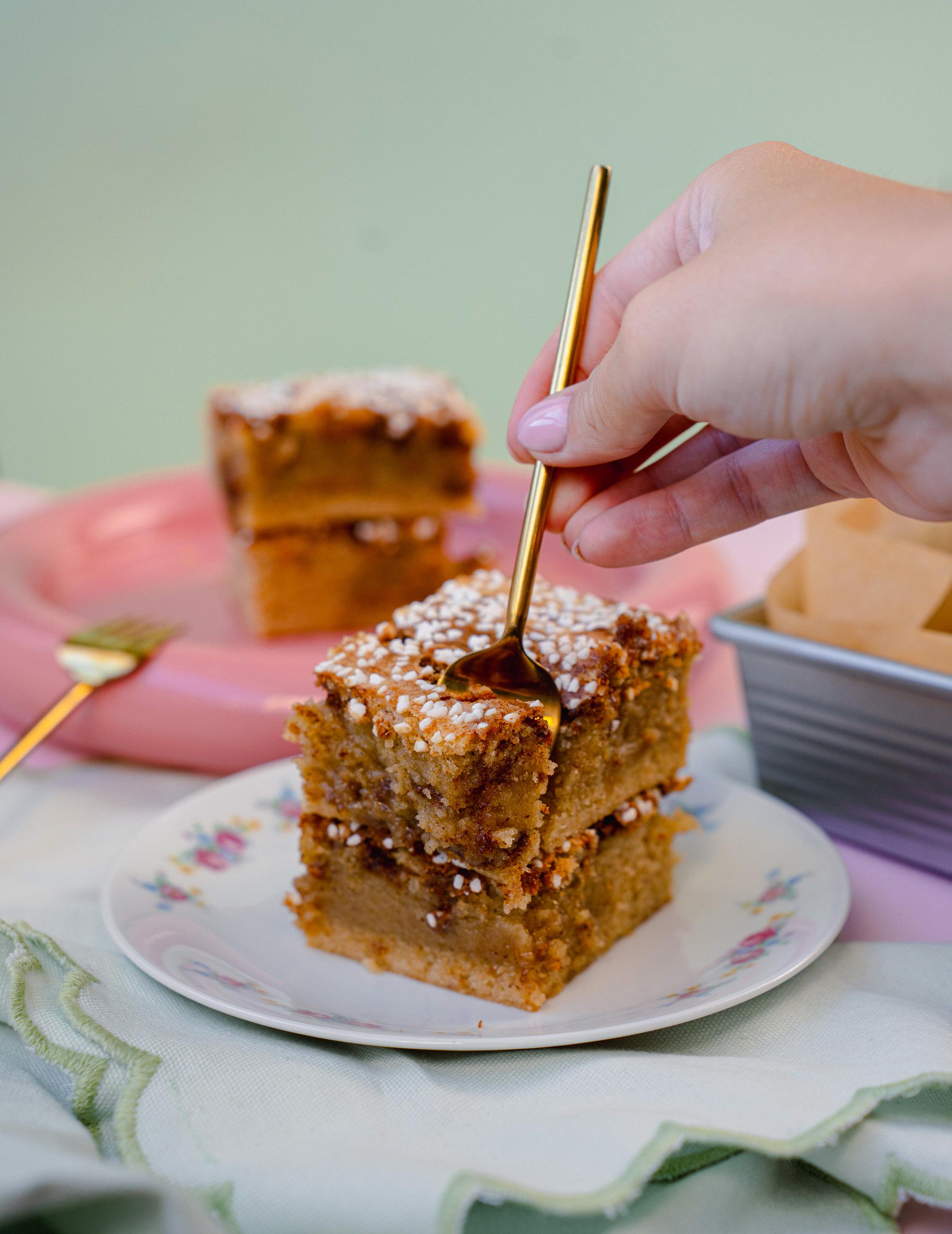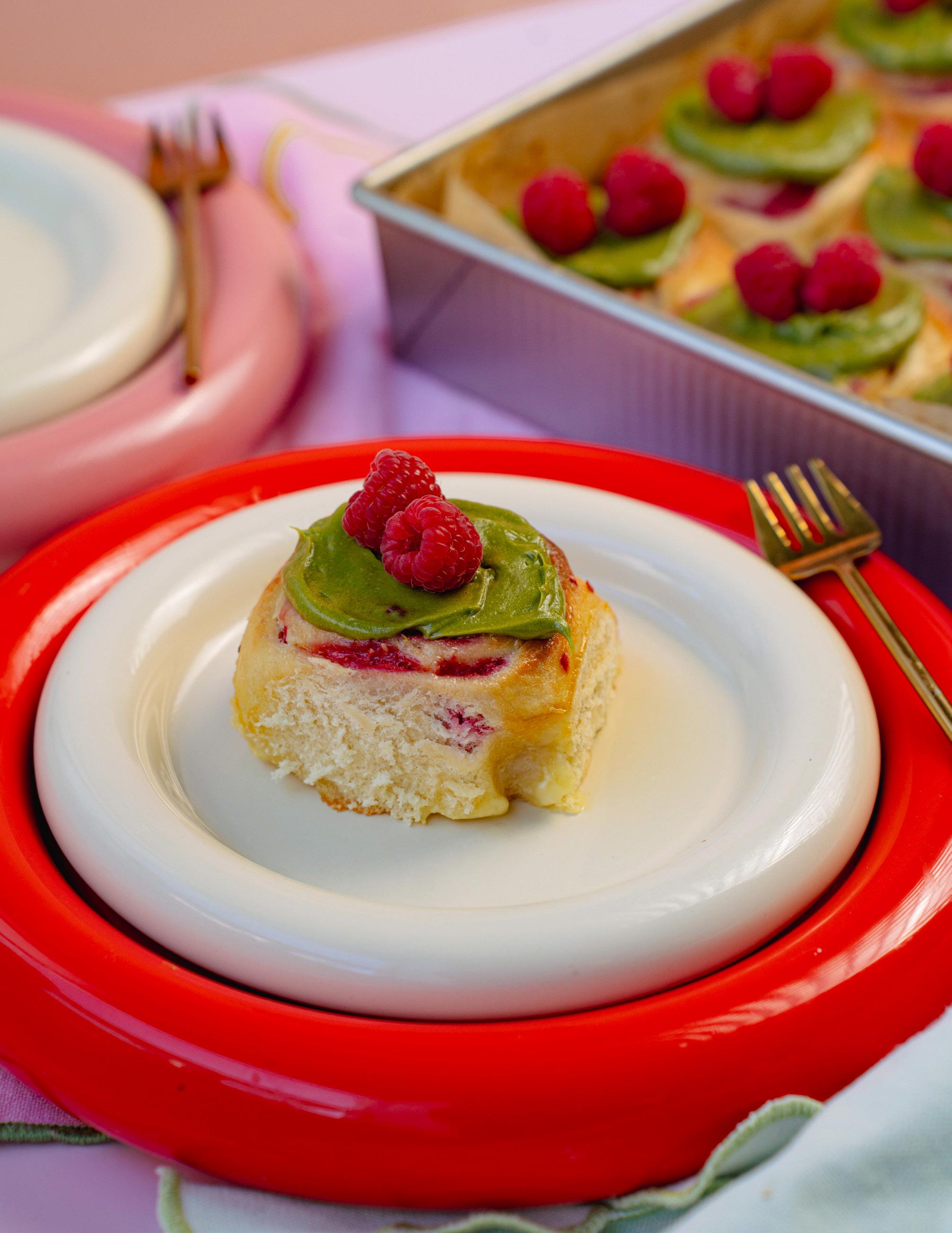 Dette føler jeg er den ultimate langpannen å ta med seg på sommerfest. Den inneholder en saftig bunn med smak av pistasj, toppet med pistasjkrem og bringebærsyltetøy. Jeg liker også å toppe denne med hakkede pistasjnøtter, som gir enda litt mer crunch. For meg er det sommer i disse smakene. Ikke bare blir dette festens fineste kake, den smaker også helt himmelsk.