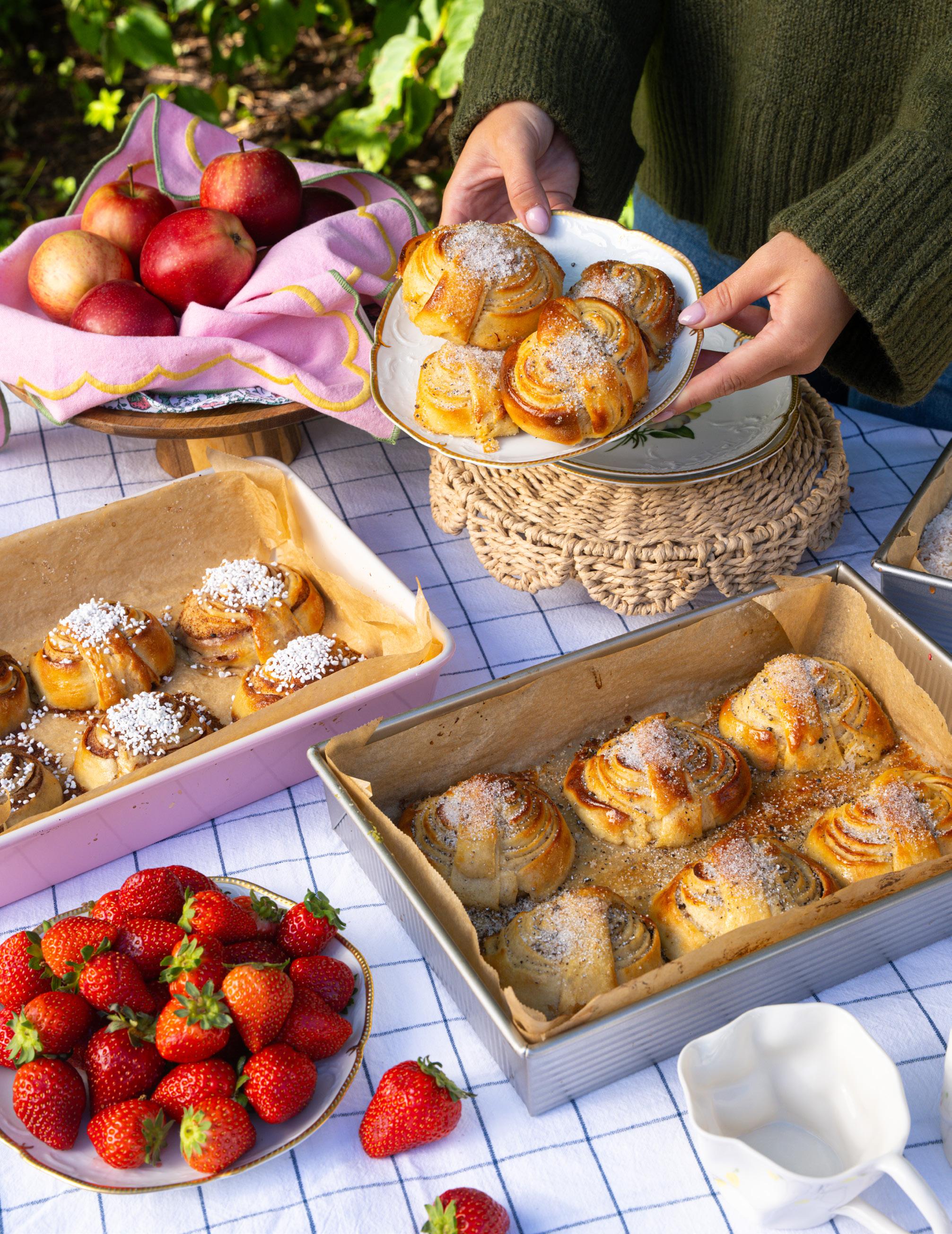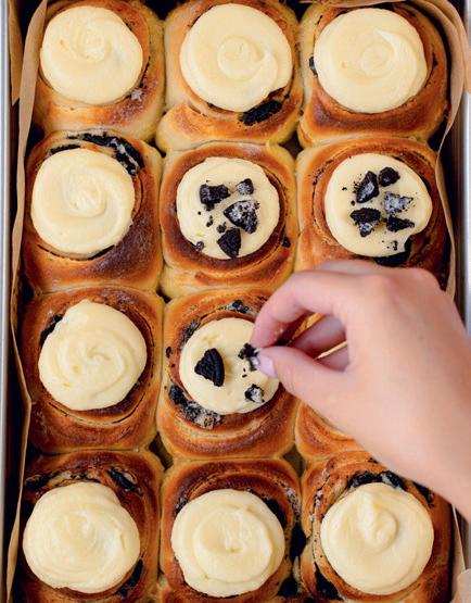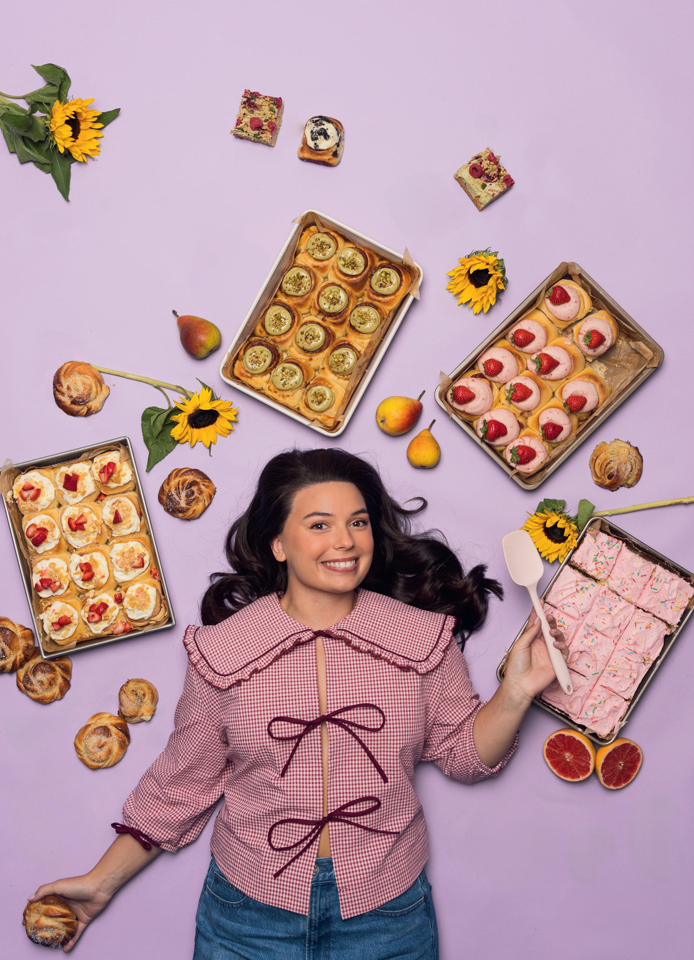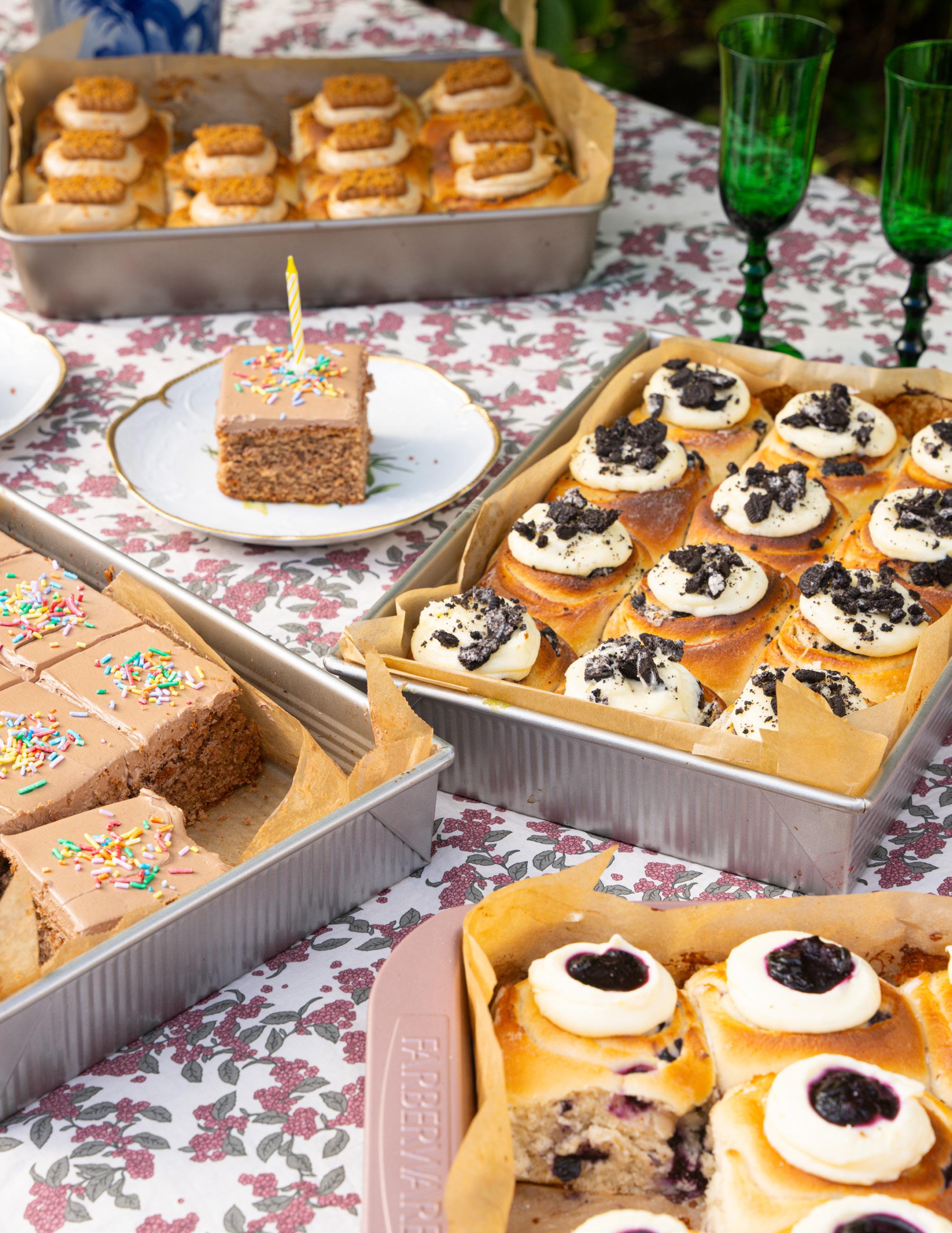 Oppskriftene i denne boka bygger på alt det jeg har elsket å bake fra jeg var liten og frem til nå. Pannekake i langpanne var noe mamma pleide å lage til søsteren min og meg for å spare tid da vi var små. Det er fantastisk godt, enkelt og kan gjøres skikkelig kreativt. Den perfekte frokosten og lunsjen. Oreo-kake har fulgt meg gjennom hele livet og vært fast inventar både en fredagskveld og på absolutt alle festbord. Det er vanskelig å skulle velge et favorittkapittel, men det er ingen tvil om at gjærbakst ligger hjertet mitt nær. Skoleboller eller cookies i langpanne? Ja takk!