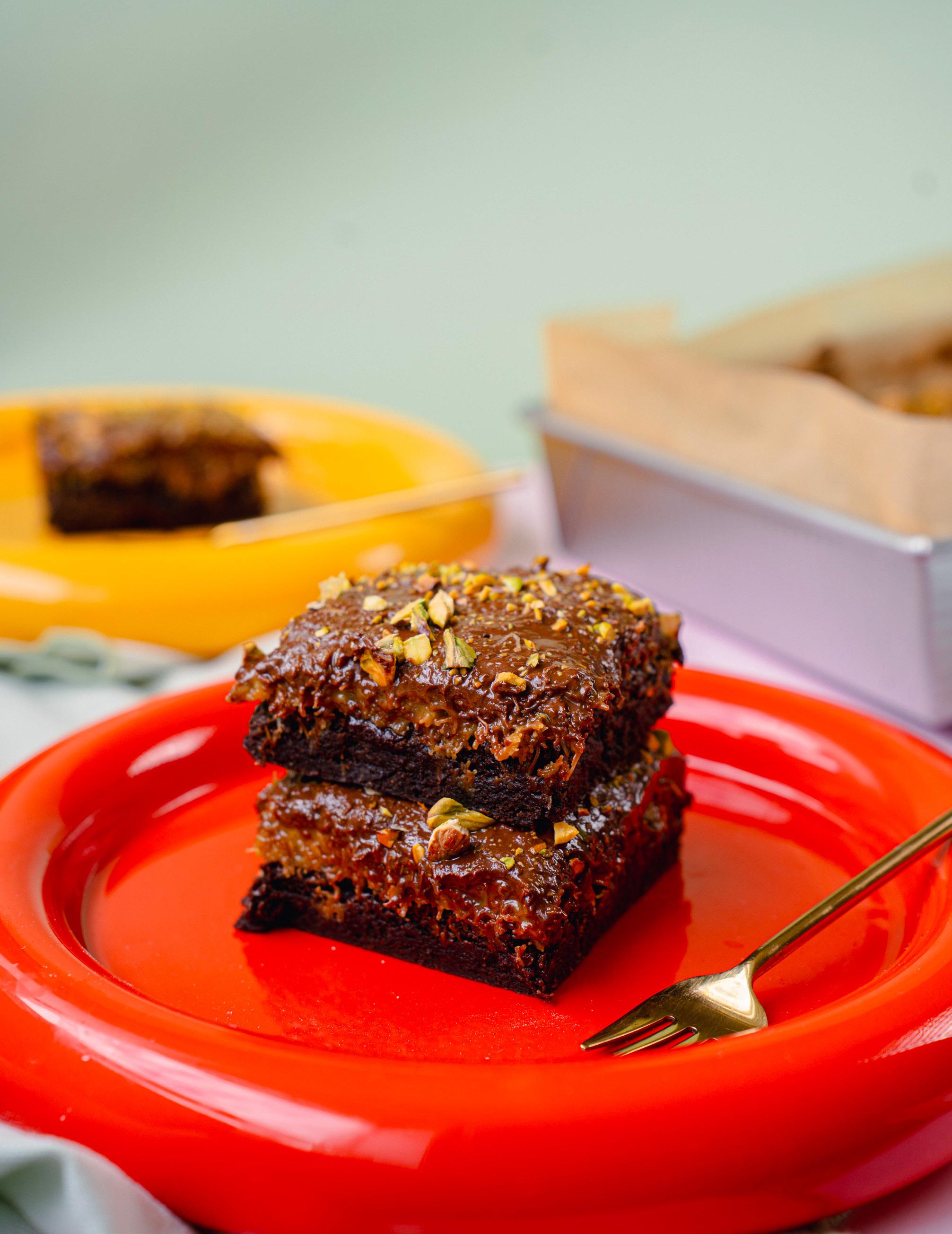 Dubai-sjokolade var absolutt den store snakkisen i 2025 og en gjenganger i alt som var søtt. Jeg kan godt være den første til å si at jeg elsker denne trenden og håper den varer. For hva er det vel ikke å elske med smaken av pistasj og noe crunch? Dette er en fudgy brownie med et lag av pistasjfyll, toppet med smeltet sjokolade. Lag den til neste anledning, og jeg kan garantere at du imponerer både den ene og den andre.