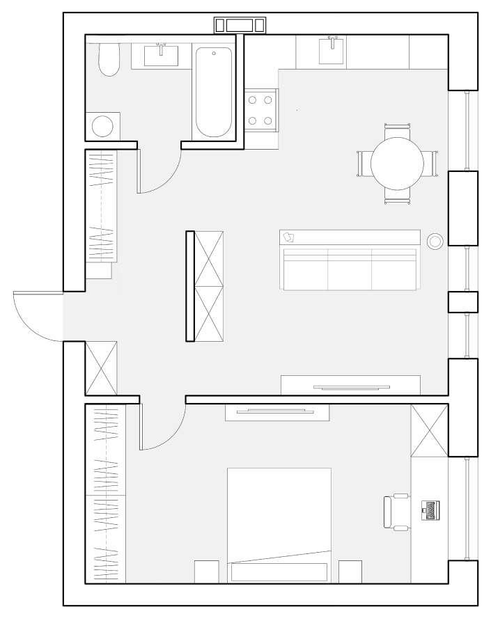 17 Коридор Санвузол Спальня 20,3 м² Кухня-вітальня 26,5 м² 7,3 м² 5,4 м² План на відмітці +3.600 Планувальне рішення №2 для двокімнатної квартири