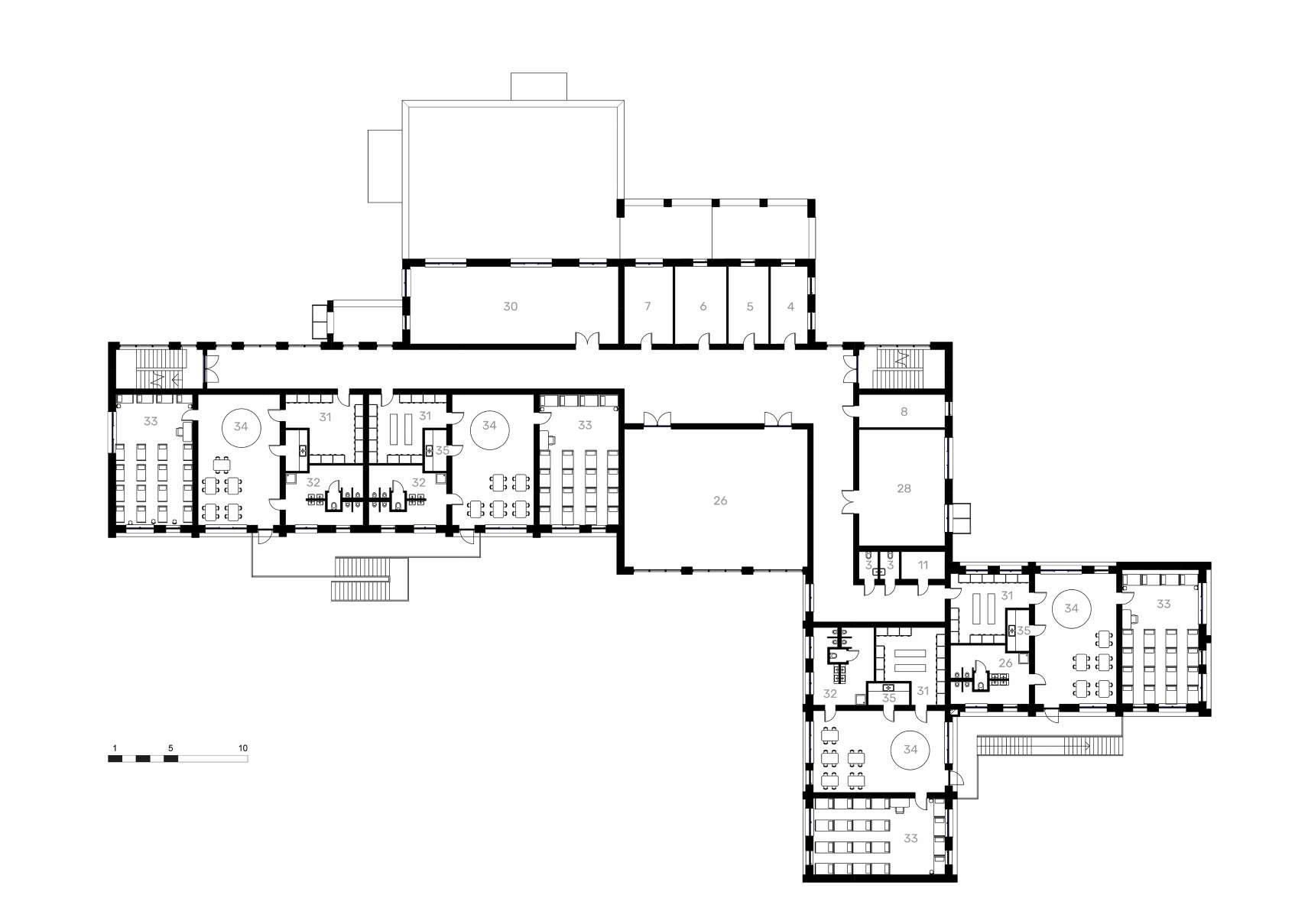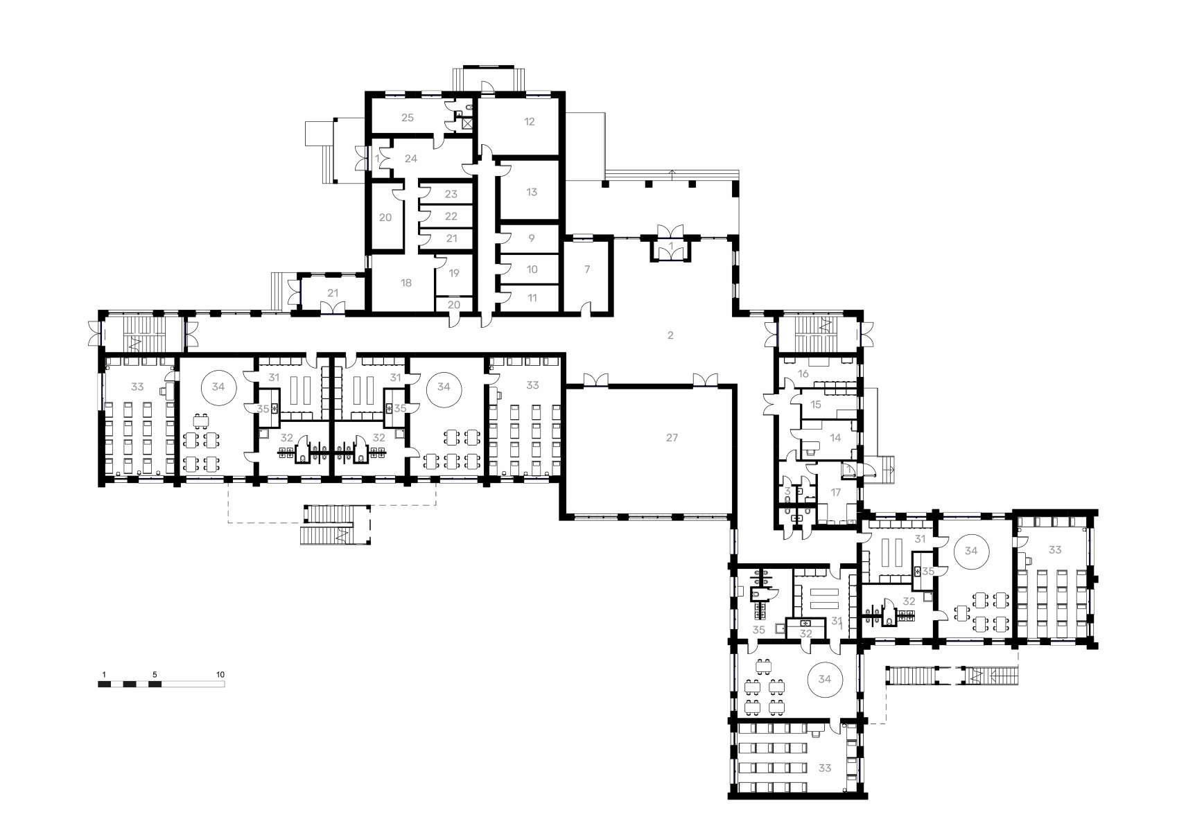 Кімната образотворчого мистецтва 29. Логопедичний кабінет 30. Приміщення ігротеки 31. Роздягальня 32. Туалетна 33. Спальня 34. Ігрова кімната