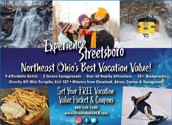 Streetsboro welcomes you at our nine affordable franchise hotels. two beautiful campgrounds and over 50 family friendly restaurants ranging from fast food, drive thru or casual dining. There are numerous special events taking place throughout the year. Start planning now for your next memorable vacation or winter getaway. ¤