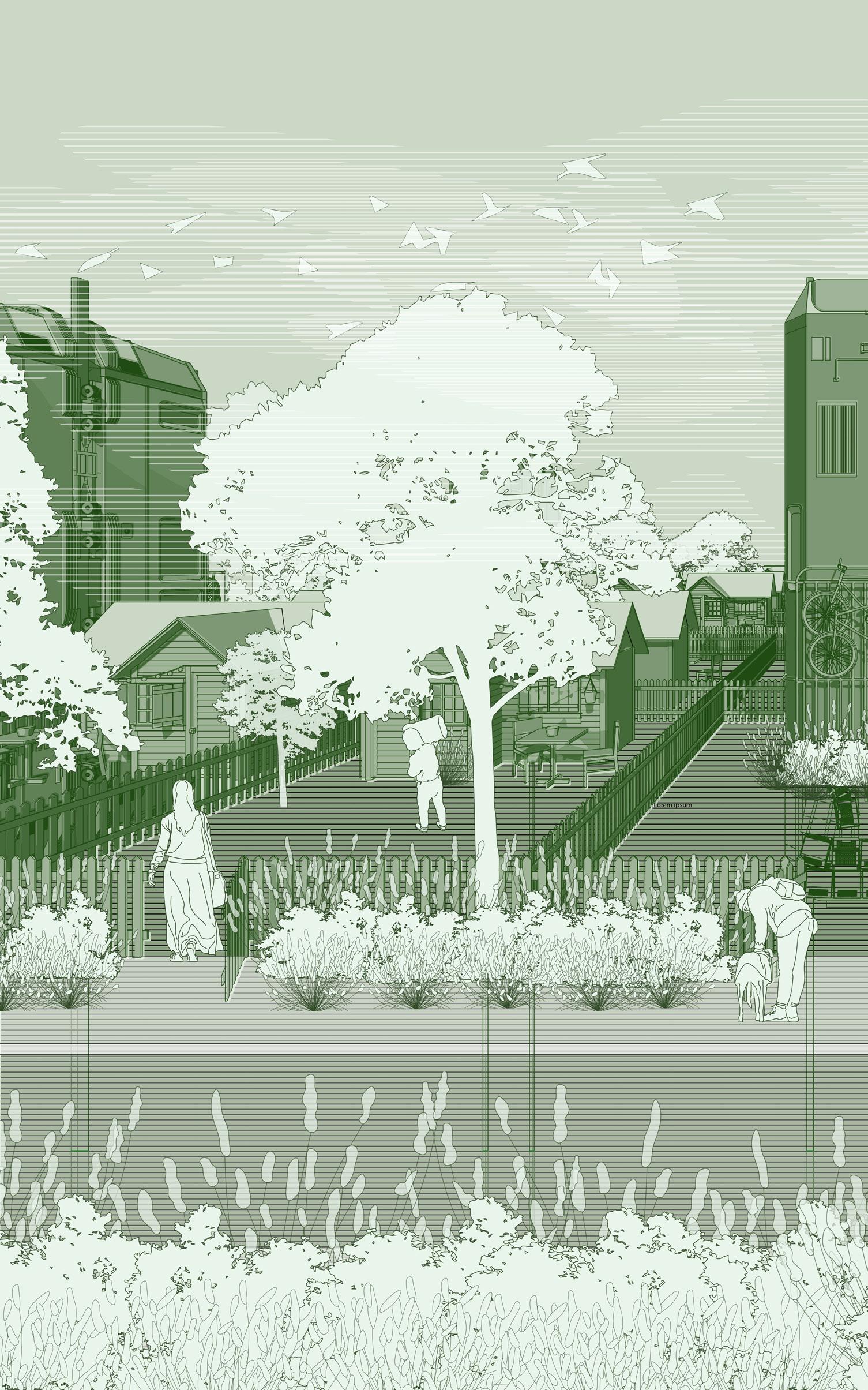 This project aims to orchestrate existing systems, context, typologies, and emerging technology as a way to define the atmosphere of northern Downtown Knoxville and the surrounding communities. It aims to animate the aural atmosphere of the urban corridor and reach into the skies as we imagine the future of transportation.