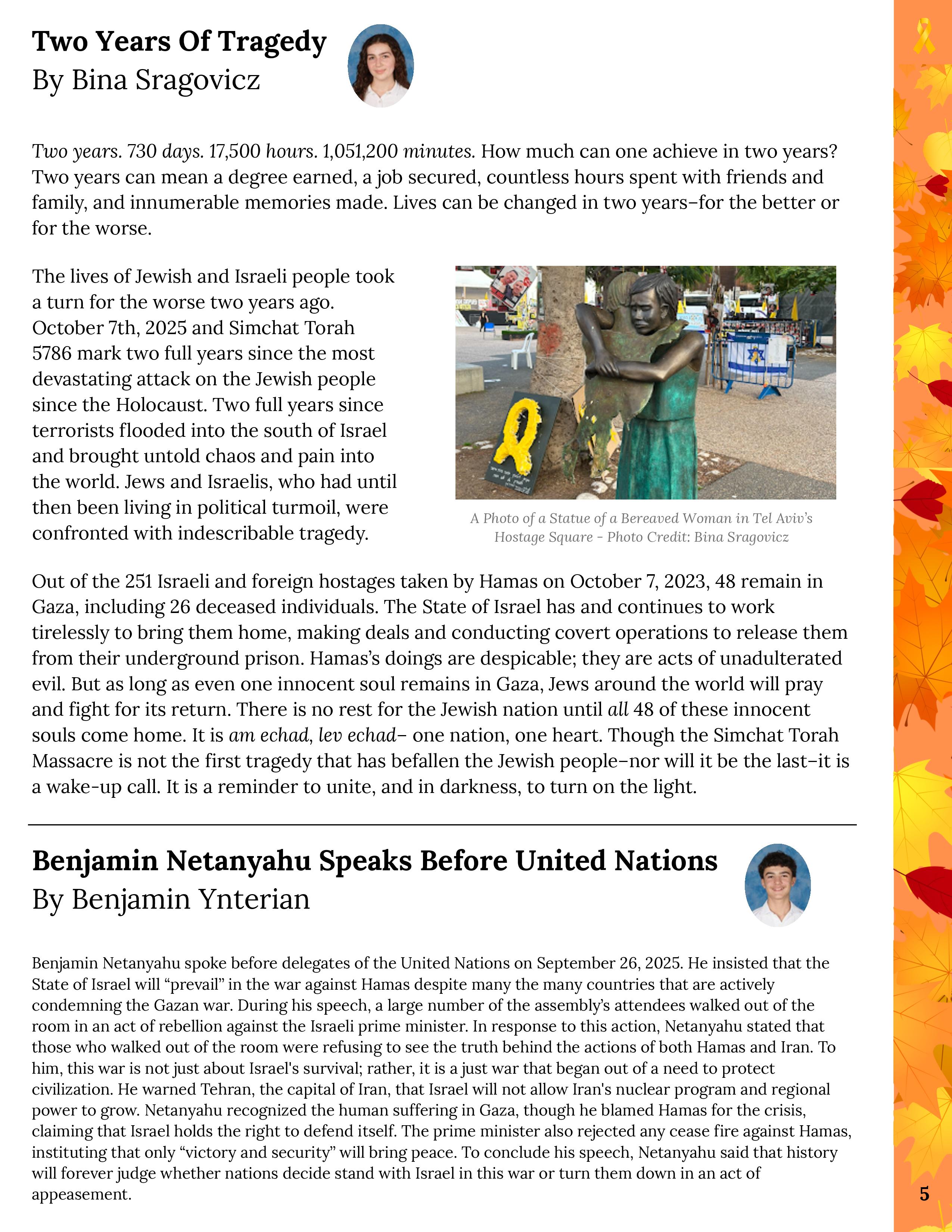 Roar Post October 2025 by Scheck Hillel Community School - Issuu