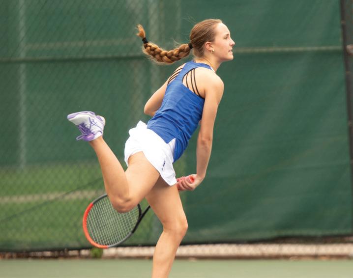 Annie Wareing finishes her serve. Photo by Kennedy Greene.