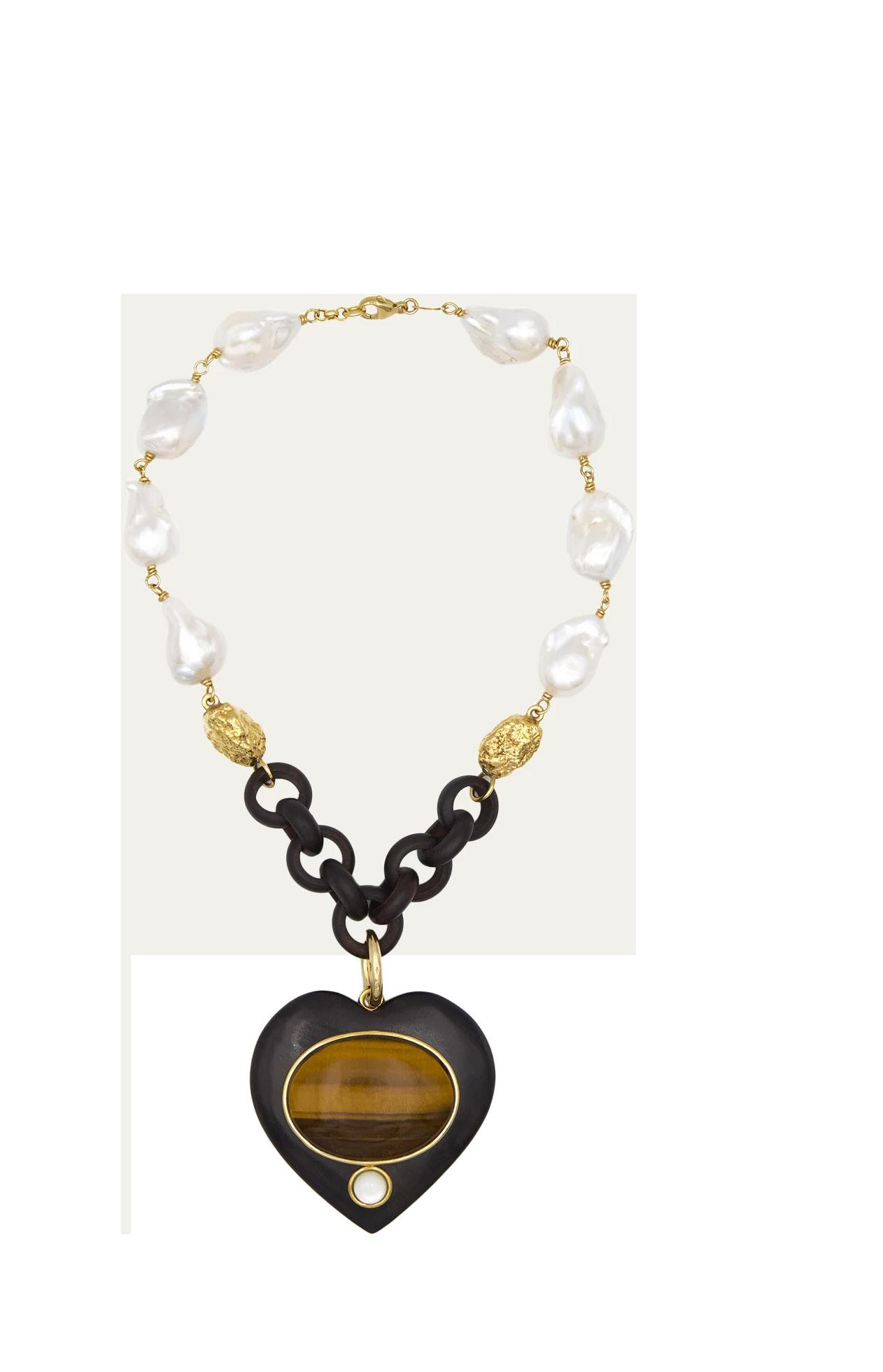 Ebony and Pearl Necklace with Tiger’s Eye Heart