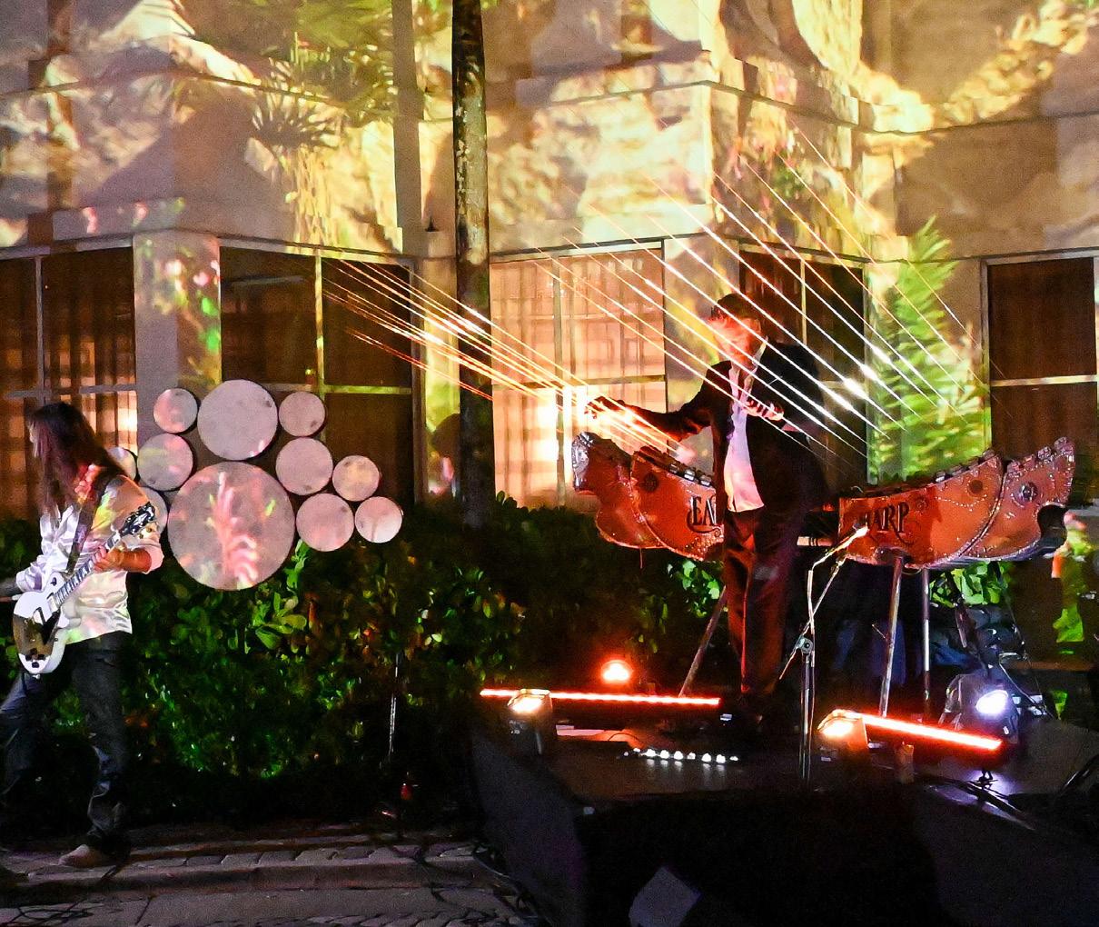 Guests arriving at the historic oceanfront property were greeted by an outdoor performance by the Earth Harp – a string instrument suspended across the entrance to the hotel with imagery matching the performance