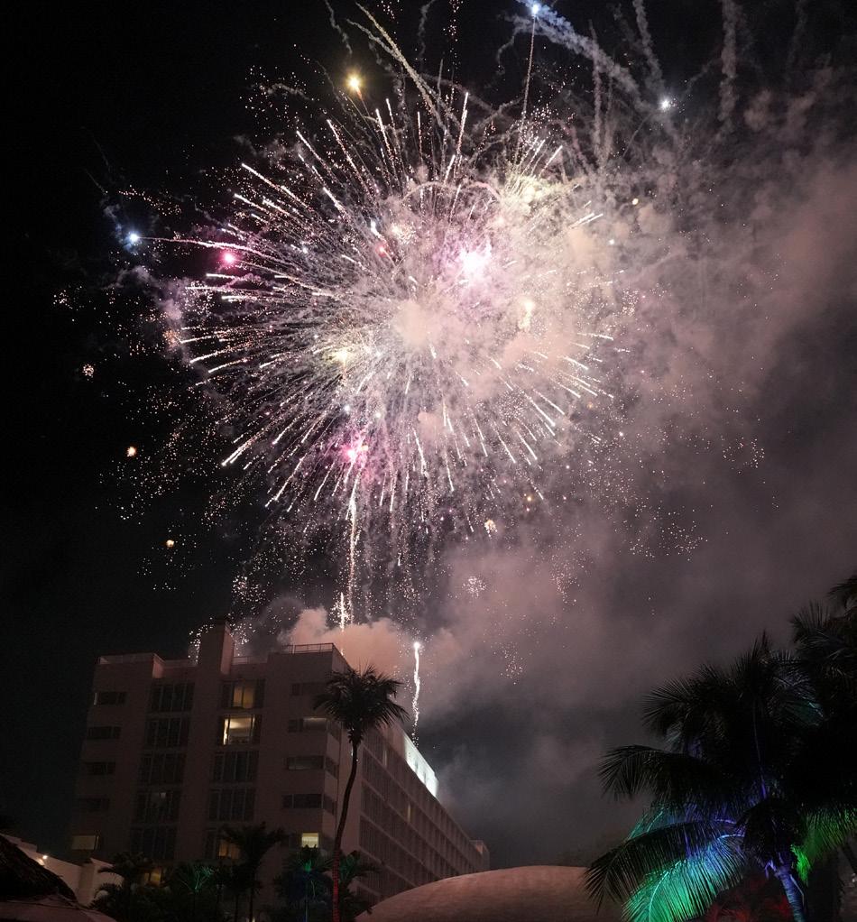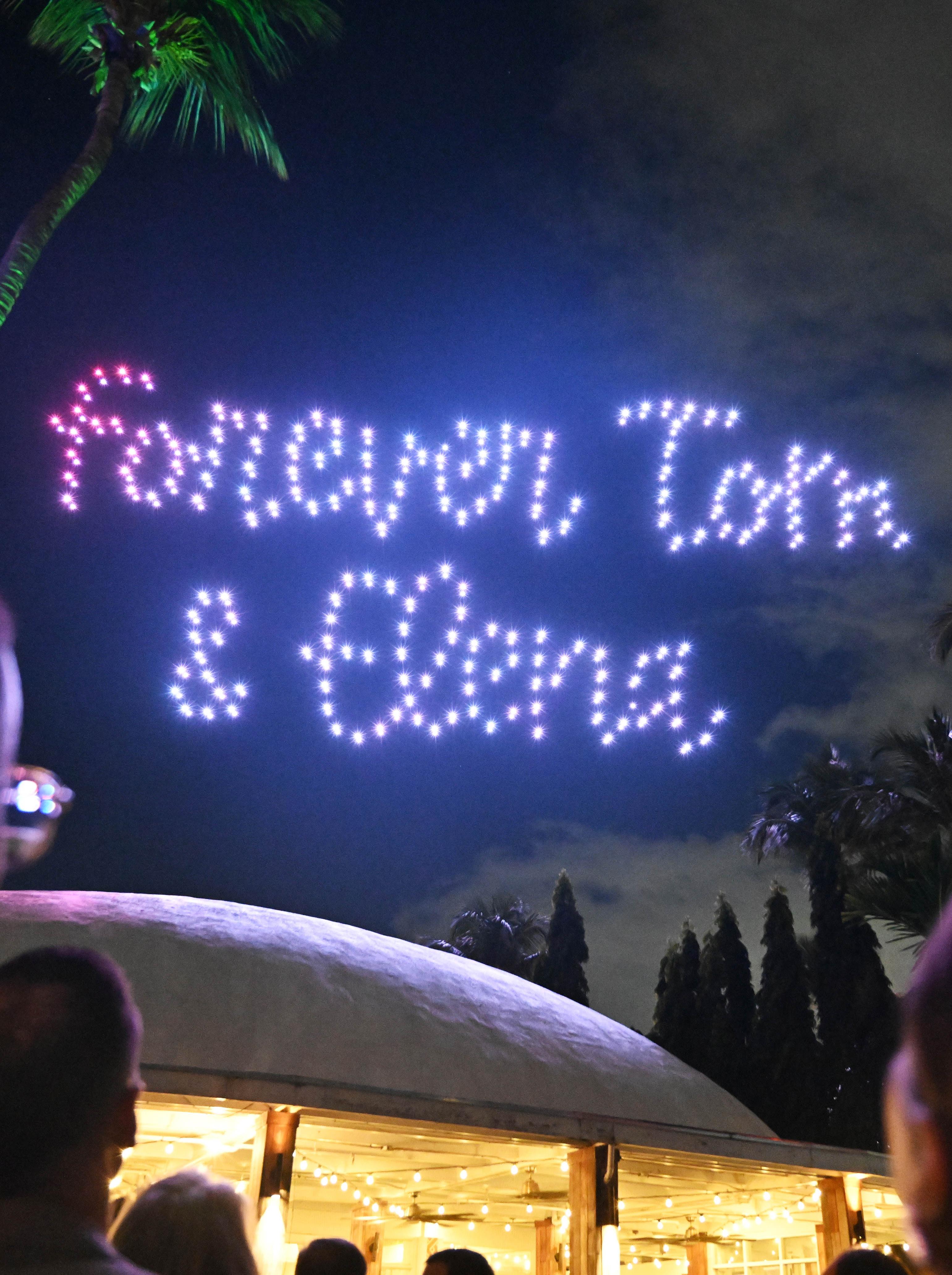 Following the surprise performances, an outdoor drone show lit up the Caribbean sky above Isla Verde, choreographed to music and tracing celebratory patterns overhead. As the drones dimmed, a full fireworks display erupted above the resort, drawing cheers from the crowd and setting the scene for the presentation of a birthday cake in honor of Dr. Alvarez-Westwood.