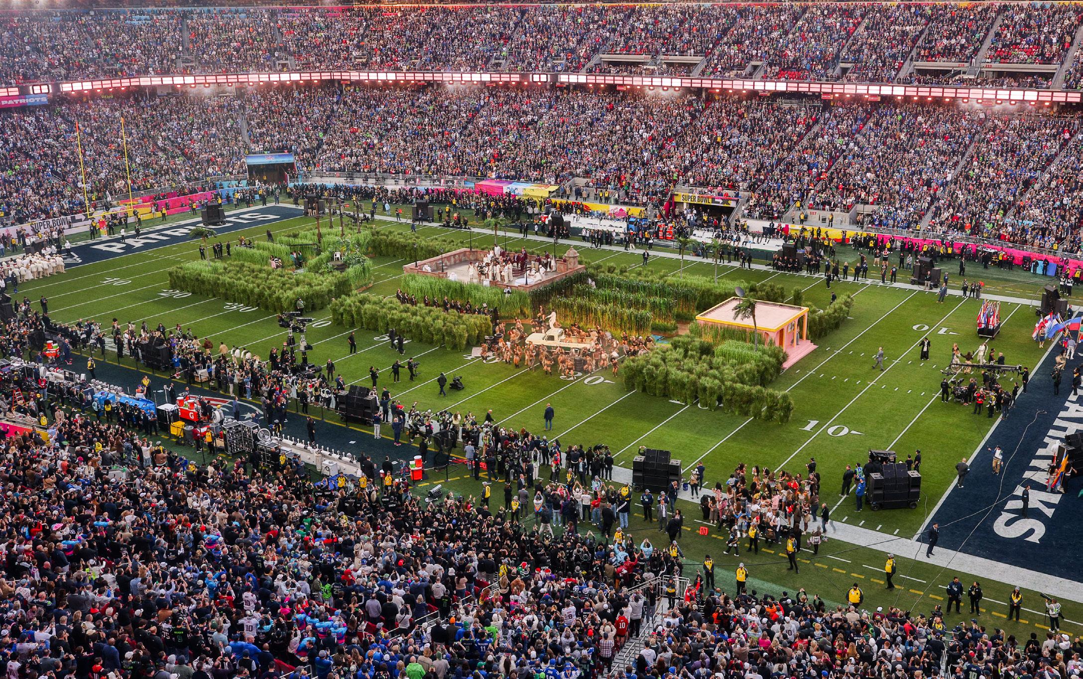 Bowl halftime entirely in Spanish, commanded the stage in a vibrant, high-energy performance steeped in Puerto Rican pride and Latin influences. The set featured elaborate tropical and historical motifs, including sugarcane fields symbolizing heritage and resilience. Special guest appearances by Lady Gaga—who joined for a salsainspired rendition—and Ricky Martin elevated the spectacle further, blending reggaeton, salsa, bomba, and other genres in a joyful homage to Latino