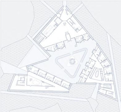 Kabul Plan of exhibition part Plan of residential part Plan of meditation part 2 1 1 1 2 3 2 3 4 3 5 4 1.Exhibition Space 2.studio area 3.Pantry 4.Leisure Platform 1.Reading Space 2.Recreation area 3.Dwelling Units 4.Leisure Platform 1.Exhibition Space 2.Individual meditation 3.Lobby Through the design of the internal traffic flow, it expresses how women can realize their values in the area, including education, work, exhibition space, etc. A sky-facing axis is set up and a stairway to the sky is added while living units are designed on both sides of the stairway to provide a free atmosphere. The circle is a space representing freedom, in contrast to the outer caged space, and a symmetrical independent meditation space is set up inside. Education Exhibition Residential Interection communication Meditation Cage Working