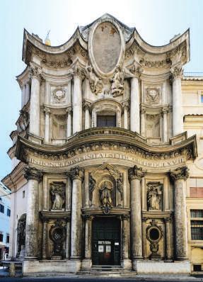 Sopra, il genio innovativo di Borromini si dispiega nella chiesa di San Carlo alle Quattro Fontane (1634-1641), fra i capolavori dell’architettura barocca che progettò a Roma.