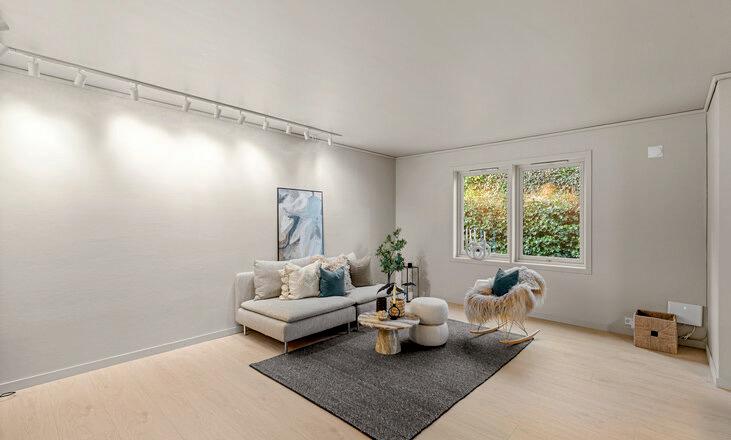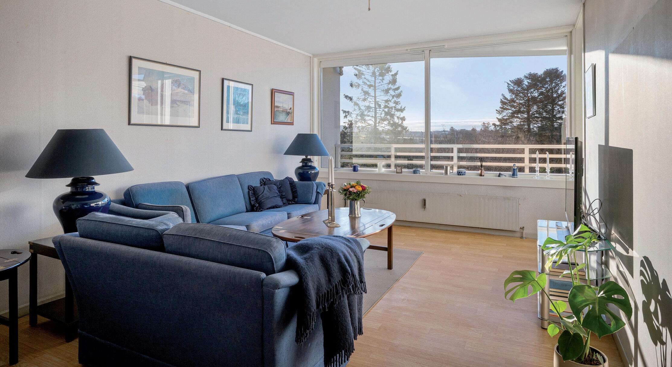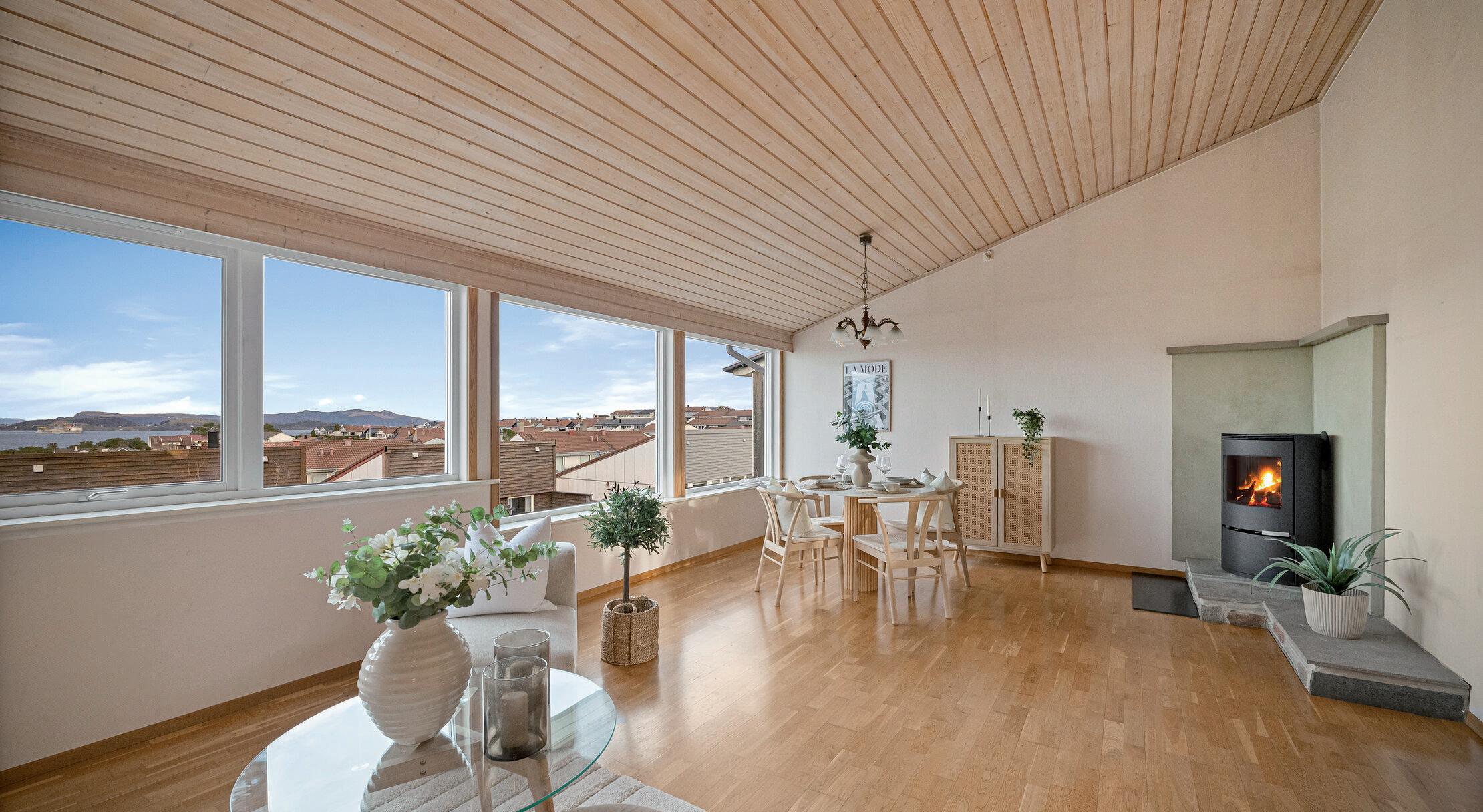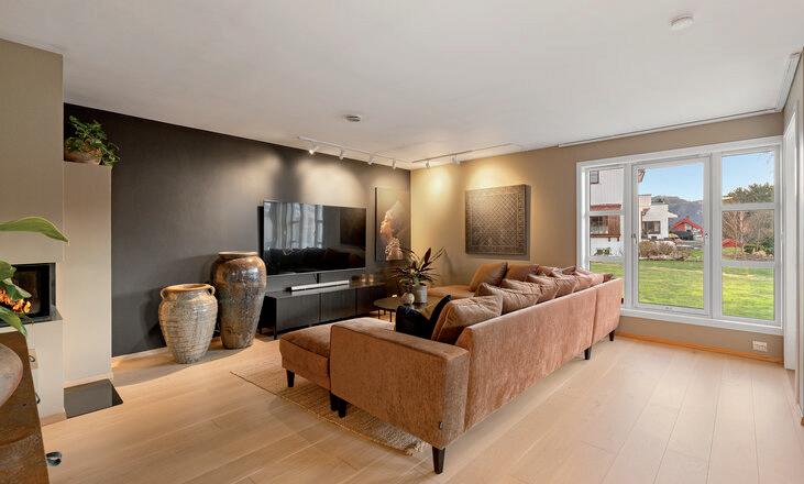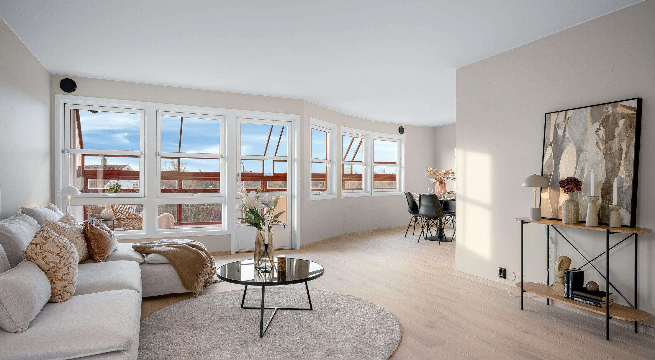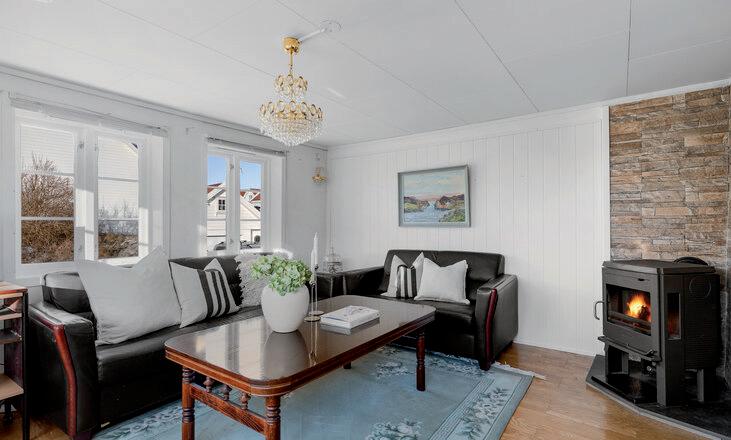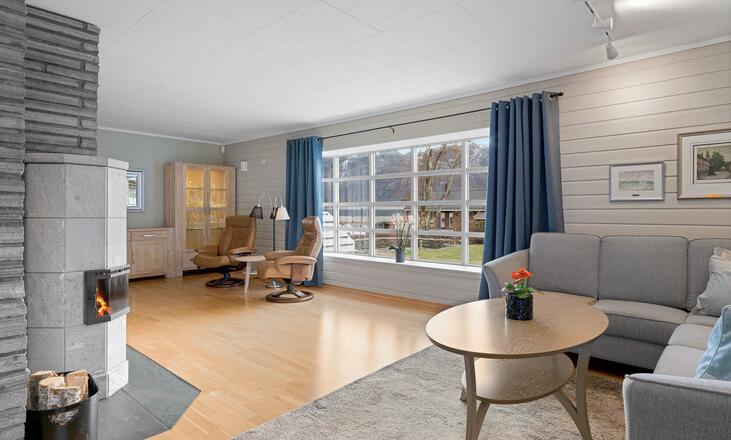 * Lys og fin stue med store vindusflater som gir rikelig med naturlig lys