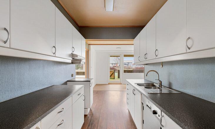 * Kjøkkenet med god skap- og benkeplass