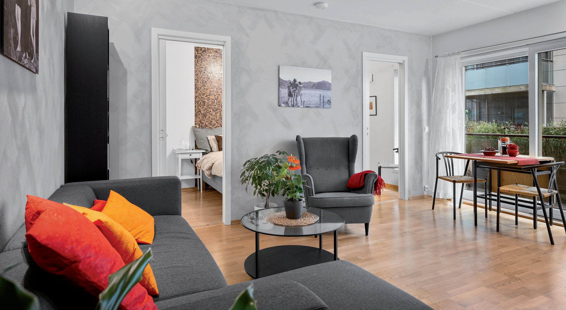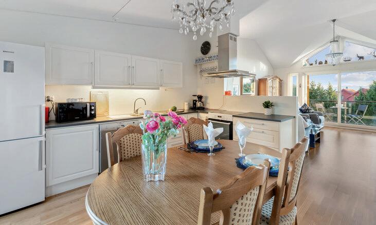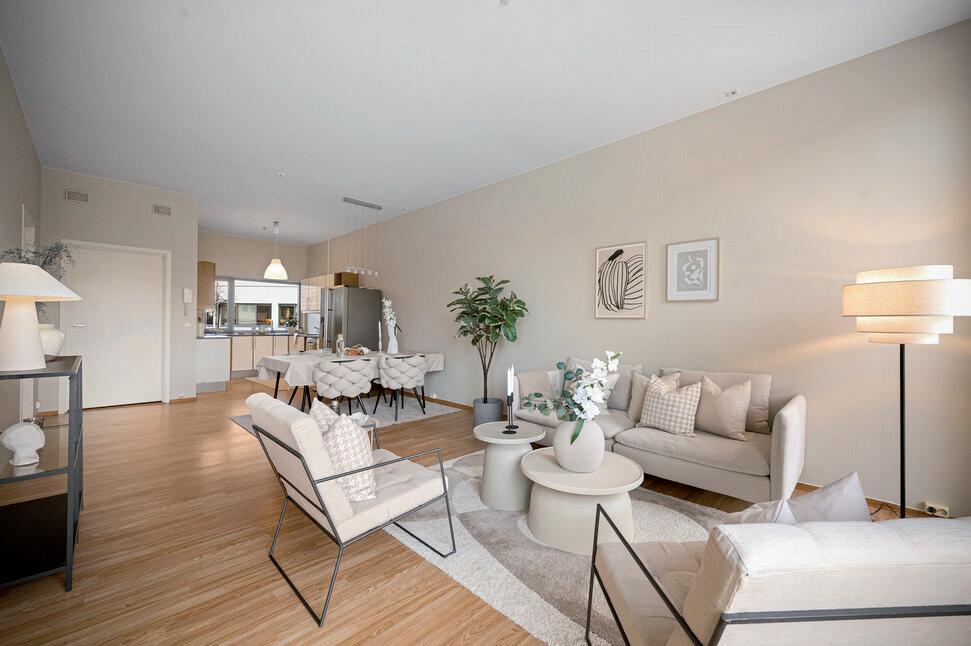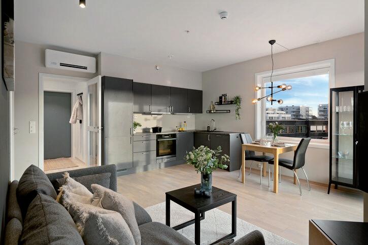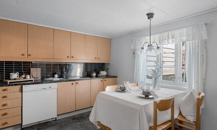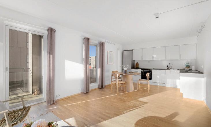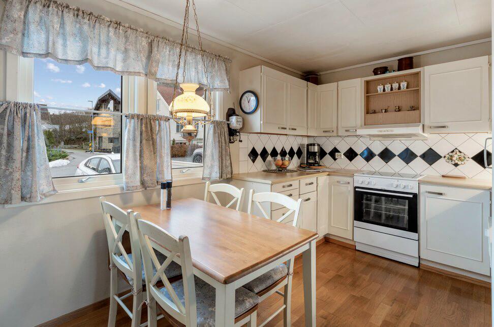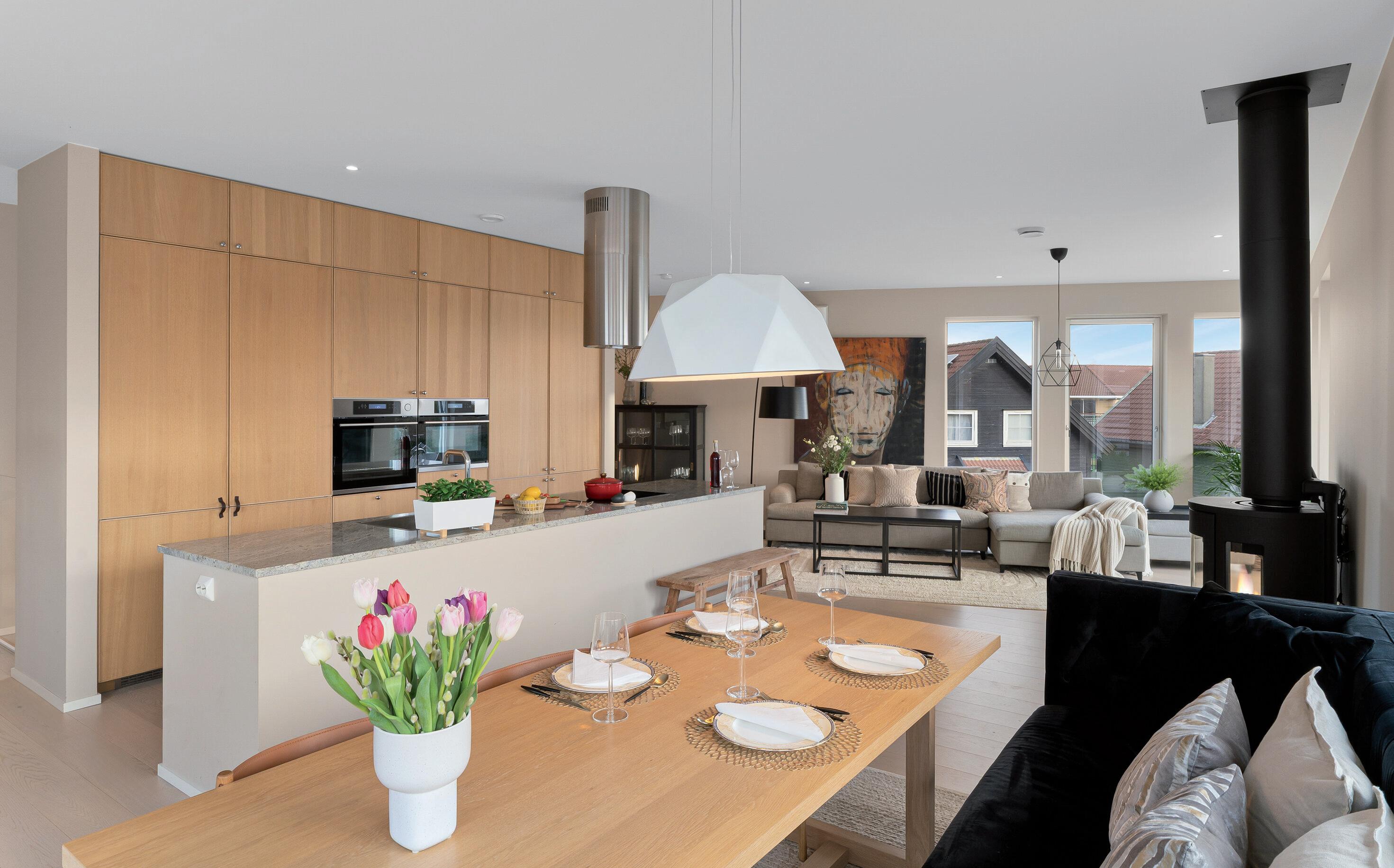 - Åpen stue- og kjøkkenløsning med god plass til sofagruppe og spisebord.