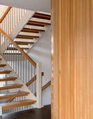 Boligen preges av gjennomtenkte materialvalg som gir både høy komfort og minimalt vedlikeholdsbehov. Buene går igjen i arkitekturen, og kombinasjonen av hvitlasert teglstein og sibirsk lerk skaper et helhetlig og særpreget uttrykk, både ute og inne.