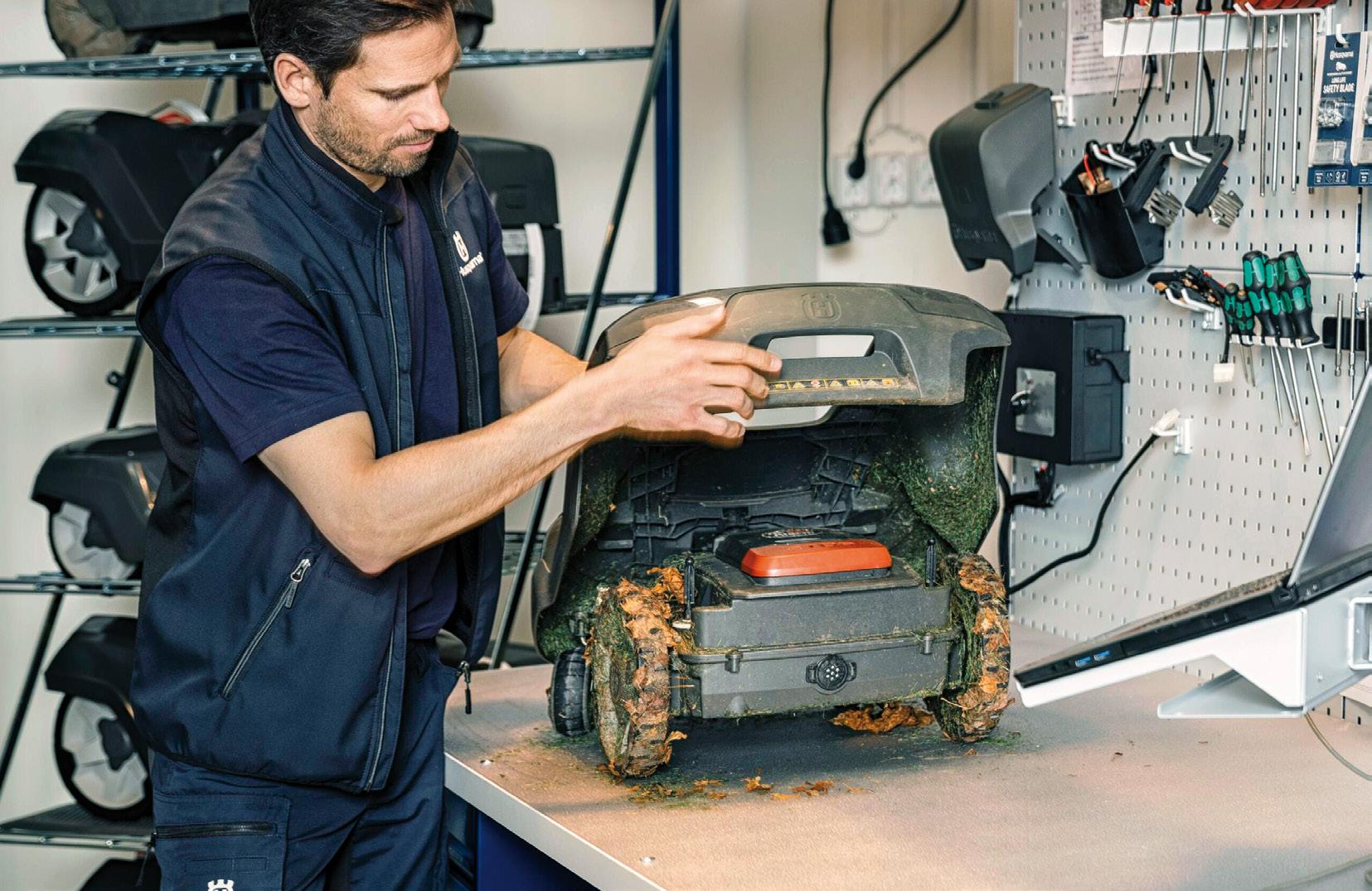 Stadig flere lar robotgressklipperen være hos Eiksenteret over vinteren, slik at den kan hentes klargjort til neste sesong. Samtidig sparer du plass og er sikker på at klipperen lagres trygt. Da får du inkludert vask, feilsøking, programvareoppdatering, knivbytte, sjekk av batterifunksjon, lading, test av sikkerhetsfunksjon og lagring gjennom vinteren, avhengig av hvilken pakke du velger. Ta kontakt med ditt lokale Eiksenter for mer informasjon om våre ulike pakkeløsninger. £
