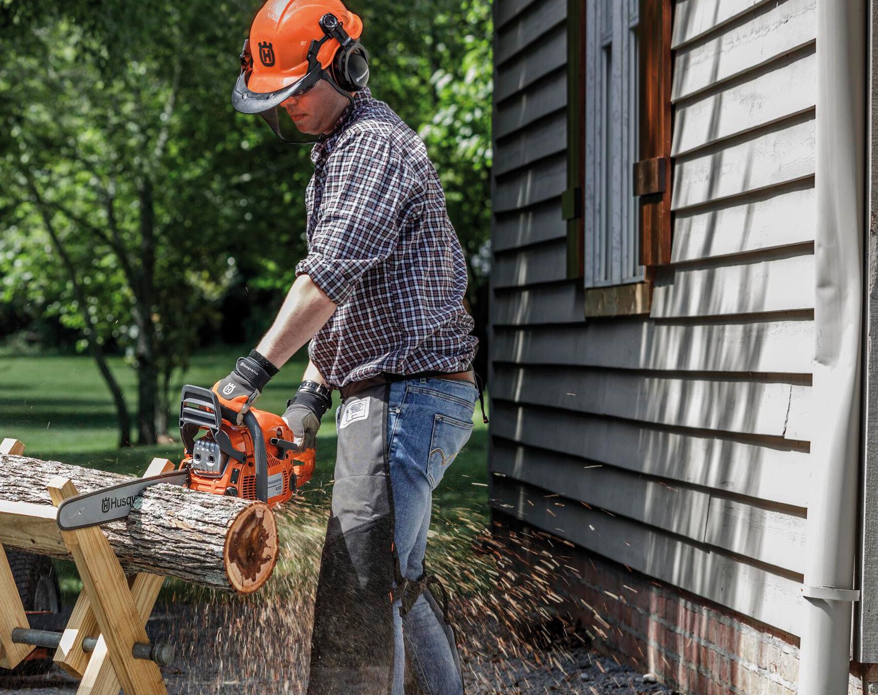 – Først og fremst trenger du en god vernebukse med innlegg i front som kan redusere skaden hvis uhellet først er ute. Disse finnes i flere prisklasser, og det er først og fremst komforten som endrer seg. Mange velger en litt bedre kvalitet med flere forsterkninger og elastiske stoffer som gjør det enklere å jobbe lange dager. Det kan også bli varmt når du står meg motorsagen, og da er utlufting viktig, forklarer produktspesialist Oddmund Ihle hos Husqvarna Norge.