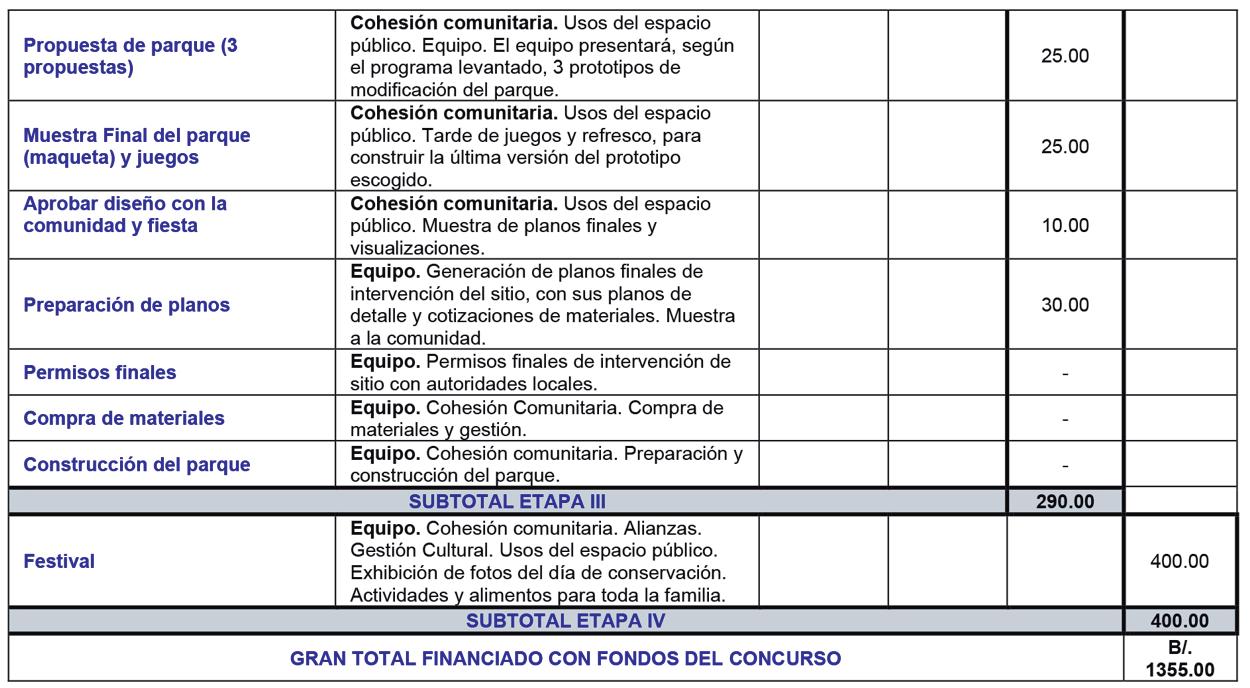 Nota aclaratoria: Los costos y subtotales de las etapas anteriores se pueden ver completas en el cronograma de actividades. El TOTAL FINAL de las actividades educativas/culturales, administrtivas y de costrucción sería de B/. 3,581.74