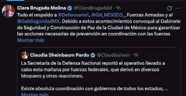 En su cuenta de X, la mandataria capitalina reconoció el operativo coordinado y pidió garantizar prevención junto a las fuerzas federales.