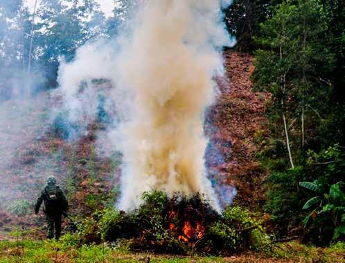 PERSONAL DEL EJÉRCITO realizó la quema de tres plantíos de hoja de coca en la Sierra de Atoyac, Guerrero. Los militares también ubicaron un laboratorio clandestino para procesar la droga. Foto: Cuartoscuro