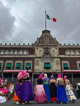 Con los performances del colectivo “Ca puchas Rosas”, cientos de mujeres partie ron de diversos puntos rumbo al Zócalo de