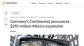 La agencia Reuters informó que el fabri cante alemán de autopartes Continental anunció que invertirá 210 millones de dó lares en Guanajuato, pues tiene proyecta do abrir una nueva fábrica y ampliar capacidad en una planta existente. “Con la inversión, Continental espera generar más de mil 500 nuevos puestos de traba jo durante los próximos tres años”, ade lantó la empresa. cutt.ly/vNkqKHM