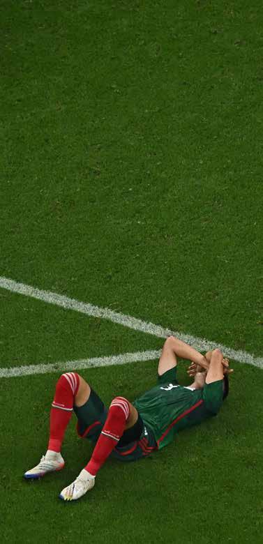 0 POLONIA 2 ARGENTINA Goles 0-1 A. Mac Allister 46’, 0-2 J. Álvarez 67’ Goles 1-0 W. Khazri 58’ 1 TÚNEZ 0 FRANCIA Fotos: AFP Como cubetada de agua fría cayó la anulación del gol anotado por Uriel Antuna, que parecía dar el pase a México a octavos de final, pero estuvo fuera de lugar. Goles 1-0 M. Leckie 60’ 1 AUSTRALIA 0 DINAMARCA 9 MUNDIALES tenía México de no ser eliminado en fase de grupos; la última vez fue en el Mundial Argentina 1978 EL DATO DEL DÍA “TODO LO QUE BAJA TIENE QUE SUBIR” Argentina se convirtió en el tercer equipo que logra ser el líder de grupo, después de iniciar con una derrota frente a Arabia Saudita. Los otros son España en 2010 y Colombia en 2018. Topten de romperredes Jugador Selección Goles G. balón parado K. Mbappé Francia 3 0 M. Rashford Inglaterra 3 0 C. Gakpo P. Bajos 3 0 E. Valencia Ecuador 3 1 L. Messi Argentina 2 1 O. Giroud Francia 2 0 B. Saka Inglaterra 2 0 Richarlison Brasil 2 0 F. Torres España 2 1 Richarlison Brasil 2 0 Grupo E Equipo Pts J G E P GF GC DIF España 4 2 1 1 0 8 1 +7 Japón 3 2 1 0 1 2 2 0 Costa Rica 3 2 1 0 1 1 7 -6 Alemania 1 2 0 1 1 2 3 -1 Grupo C Equipo Pts J G E P GF GC DIF Argentina 6 3 2 0 1 5 2 +3 Polonia 4 3 1 1 1 2 2 0 México 4 3 1 1 1 2 3 -1 A. Saudita 3 3 1 0 2 3 5 2 Grupo G Equipo Pts J G E P GF GC DIF Brasil 6 2 2 0 0 3 0 +3 Suiza 3 2 1 0 1 1 1 0 Camerún 1 2 0 1 1 3 4 -1 Serbia 1 2 0 1 1 3 5 -2 Grupo B Equipo Pts J G E P GF GC DIF Inglaterra 7 3 2 1 0 9 2 +7 E. Unidos 5 3 1 2 0 2 1 +1 Irán 3 3 1 0 2 4 7 -3 Gales 1 3 0 1 2 1 6 5 Grupo F Equipo Pts J G E P GF GC DIF Croacia 4 2 1 1 0 4 1 +3 Marruecos 4 2 1 1 0 2 0 +2 Bélgica 3 2 1 0 1 1 2 -1 Canadá 0 2 0 0 2 1 5 4 Grupo D Equipo Pts J G E P GF GC DIF Francia 6 2 2 0 0 6 2 +4 Australia 3 2 1 0 1 2 4 -2 Dinamarca 1 2 0 1 1 1 2 -1 Túnez 1 2 0 1 1 0 1 -1 Grupo H Equipo Pts J G E P GF GC DIF Portugal 6 2 2 0 0 5 2 +3 Ghana 3 2 1 0 1 5 5 0 Corea del S. 1 2 0 1 1 2 3 -1 Uruguay 1 2 0 1 1 0 2 -2 Grupo A Equipo Pts J G E P GF GC DIF P. Bajos 7 3 2 1 0 5 1 +4 Senegal 6 3 2 0 1 5 4 +1 Ecuador 4 3 1 1 1 4 3 +1 Qatar 0 3 0 0 3 1 7 -6