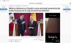 México terminará este año como la mayor economía de habla hispana del mundo, según previsiones del Centro de Investigaciones Económicas y Empresariales publicadas en Europa Press. Nuestro país se mantendrá en esa posición durante todo el horizonte de las proyecciones hasta 2037, salvo para 2027 cuando intercambiará su posición con España. bit.ly/3GjlN14
