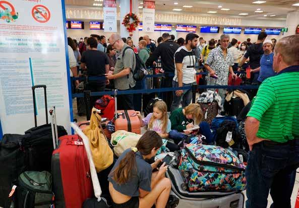CIENTOS DE TURISTAS, principalmente estadounidenses y canadienses, se encuentran varados en el Aeropuerto Internacional de Cancún debido a la demora o suspensión de vuelos por el mal tiempo en Norteamérica. Al menos 50 personas han muerto en Estados Unidos a consecuencia de la peor tormenta de nieve en tres décadas. Foto: Cuartoscuro.
