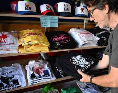 TRAS LA DIFUSIÓN de la foto policial del expresidente Donald Trump, diversos negocios en Estados Unidos han aprovechado para comercializar todo tipo de artículos alusivos a favor o en su contra, como la tienda Y-Que en Los Angeles Foto: AFP