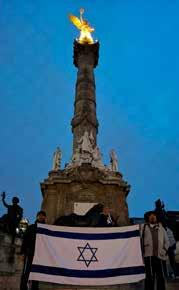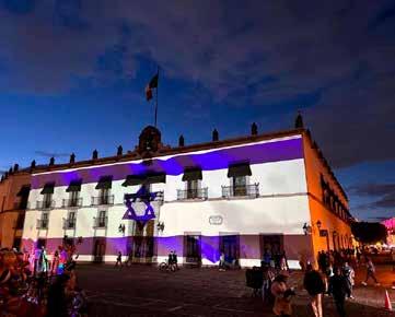 GRUPOS MEXICANOS externaron su apoyo a Israel, como el gobierno de Querétaro, que iluminó su Palacio de Gobierno con la bandera israelí. En la Ciudad de México, simpatizantes del país se manifestaron en el Ángel de la Independencia Fotos: Especial