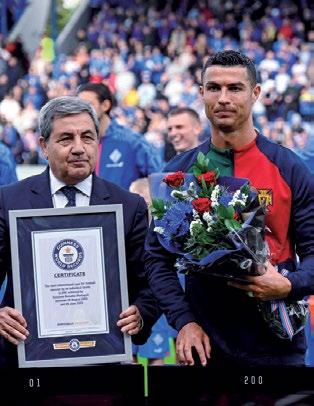 CR7 volvió a imponer otra marca con Portugal, esto tras haber llegado a la estratosférica cifra de 200 partidos jugados con su selección, convirtiéndose en el jugador con más apariciones internacionales en la historia. El martes 20 de junio, en las eliminatorias rumbo a la Euro 2024, le entregaron al astro portugués un reconocimiento y una placa con el Récord Guinness.