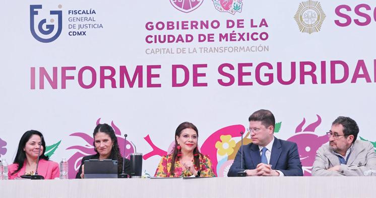 Acompañado por los integrantes del gabinete de seguridad capitalino, la mandataria reiteró que al cierre del mes anterior se consolidó la tendencia a la baja de los delitos de alto impacto, con una reducción del 6% en comparación con marzo de 2025, del 66% respecto a 2019, registrando un promedio de 50 delitos al día.
