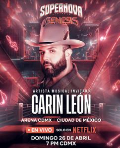 Carín León será el encargado de poner el toque musical en Supernova Génesis, el evento de boxeo que mezcla deporte y espectáculo al reunir a cantantes, actores, estrellas de reality shows e influencers que subirán al ring. El intérprete de regional mexicano se presentará el próximo 26 de abril en la Arena CDMX, pese a que horas antes se informó que fue diagnosticado con dengue.